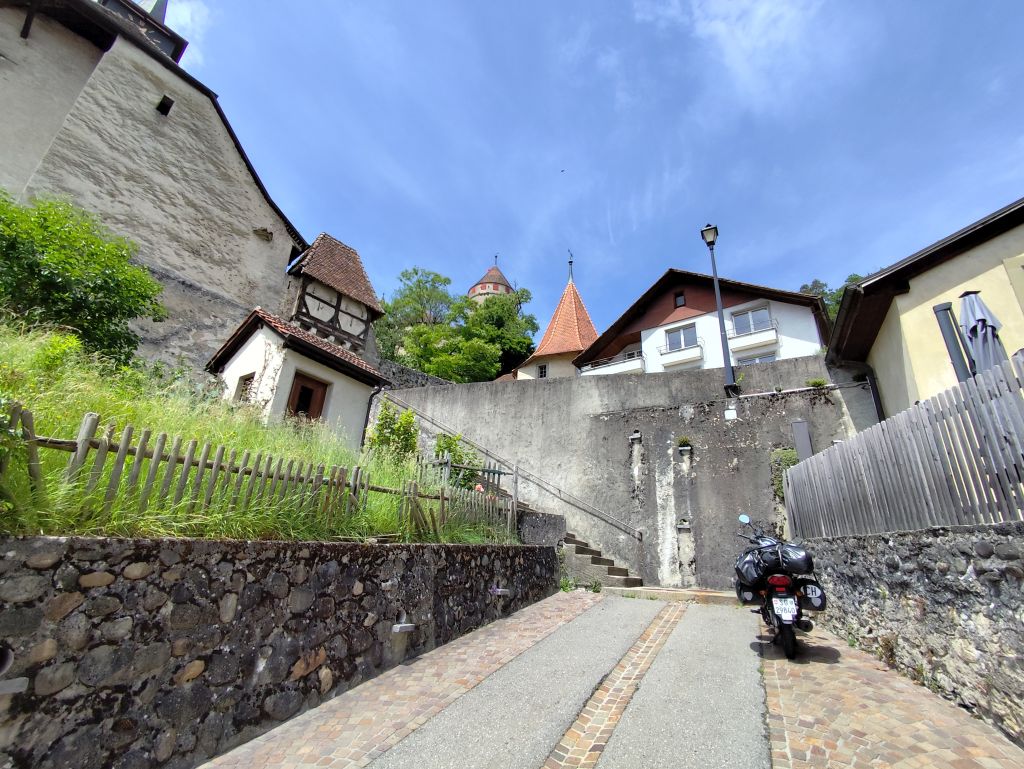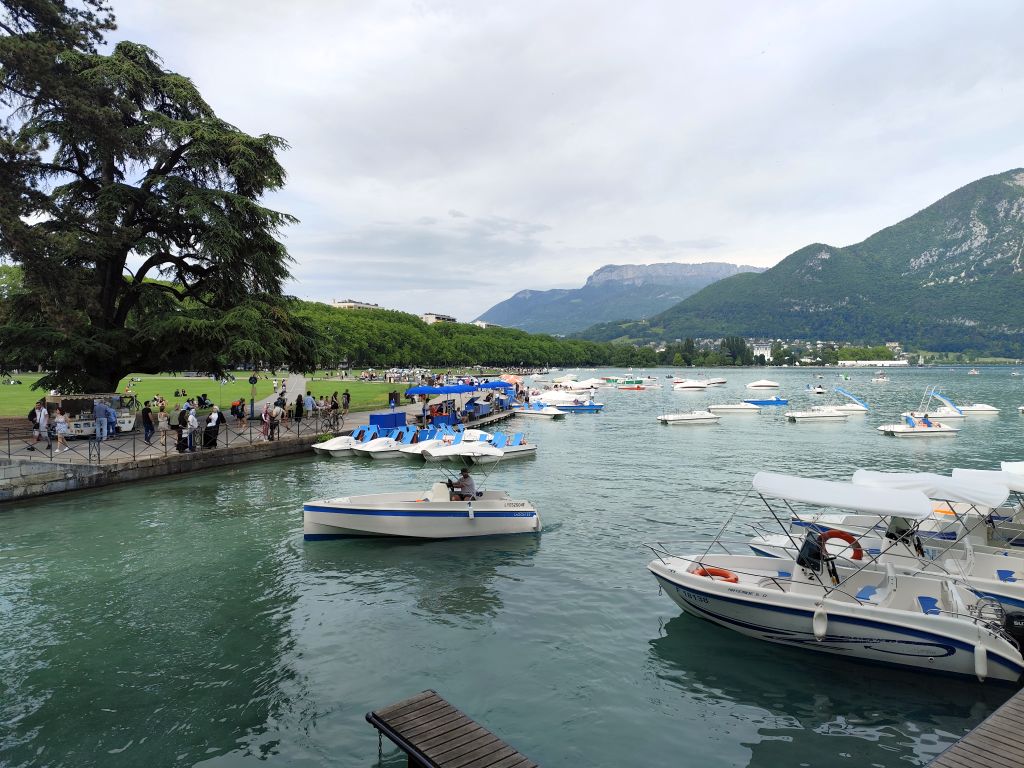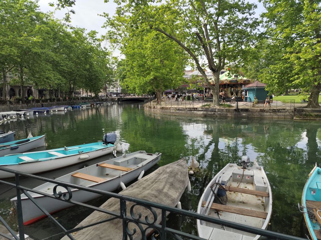 Um sechs Uhr stehe ich auf, mache das Hüsli ferienfertig, fahre um 07:30 Uhr ab. Es nieselt. Der Scooter läuft nicht so gut, es fehlt ihm etwas Leistung und der Benzinverbrauch auf der Autobahn ist ungewöhnlich hoch. Nach Sirnach hört der Regen auf. Bereits in Kemptthal muss ich nachtanken. Bis Aarau bleibe ich auf der Autobahn. Dann fahre ich auf der Hauptstrasse Richtung Bern, durch die sonntäglichen Dörfer hindurch. In Safenwil tanke ich nach. Um Bern fahre ich herum, komme durch Lyss. In Dompierre tanke ich wieder nach. In Lucens biege ich ab und möchte zur Burg gelangen, doch diese ist in Privatbesitz und der Zugang verboten. Es geht über einen Hügel an den Genfersee. Ich folge dem Navi, mit der Ausschilderung hätte ich es nie geschafft, auf die Strasse nach Genf zu kommen. In Bellevue, kurz vor Genf, muss ich nochmals nachtanken. Das Navi führt mich durch die Aussenquartiere von Genf um das Stadtzentrum herum. An einer Stelle biege ich falsch ab, muss durch einen dunklen Tunnel und gleich danach wieder umkehren. Schliesslich gelange ich auf die Strasse nach Annecy, wo ich ohne Navi navigieren kann. Beim Pont de la Caille, einer alten Brücke über eine steile Schlucht, halte ich und mache Fotos. Dann komme ich nach Annecy, wo ich den Scooter beim Rathaus abstelle und den Kanal mit seinen vielen Bootsplätzen besuche. Um halb fünf Uhr gelange ich zur Auberge de Jeunesse, die seit meinem letzten Besuch immer noch keinen Unterhalt erfahren hat und jetzt in einem Stadium des fortgeschrittenen Zerfalls ist.