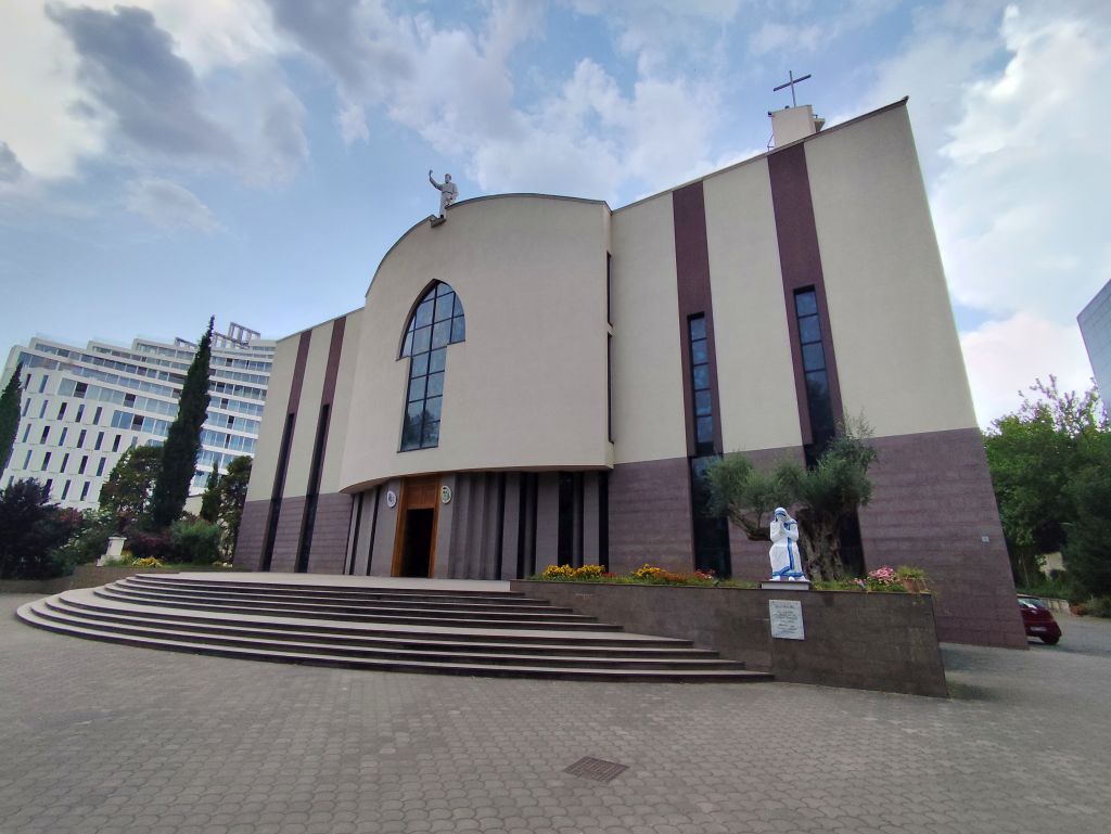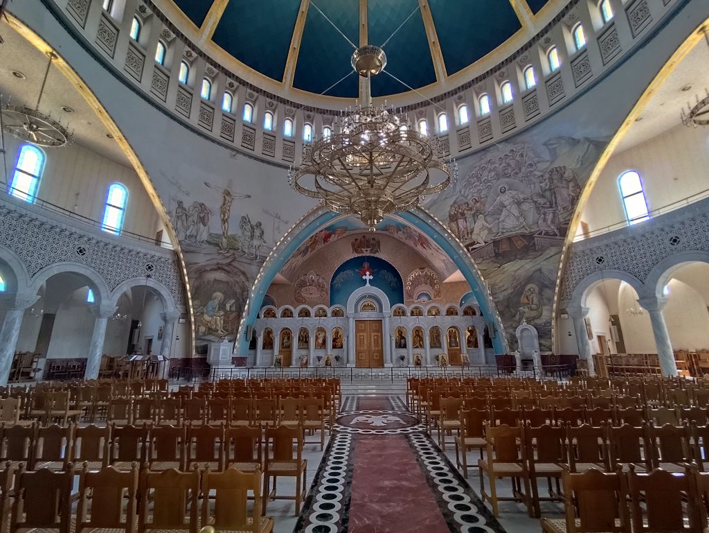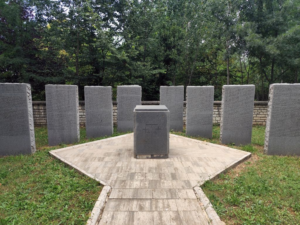 Heute muss ich den Rucksack zum Reparieren bringen, sonst reissen mir die Träger ab. Um neun Uhr stehe ich vor dem Geschäft und gebe den Rucksack ab. Dann heisst es zwei Stunden herumbringen. Ich lese etwas beim Skenderbeg-Platz. Den Clock Tower besteige ich nicht. Dafür besuche ich die orthodoxe Kathedrale Ngjallja e Krishtit. Um elf Uhr kehre zurück zum Geschäft und tatsächlich ist der Rucksack repariert. Ich bin sehr erleichtert und kehre zurück zum Mandarine Hostel, wo ich wieder den Tagesrucksack hole. Dann führe ich am Scooter den 500km-Service aus, d.h. ich schmiere und spanne die Kette, fülle das Oel auf (der Verbrauch ist schon sehr hoch geworden) und prüfe den Luftdruck vorne und hinten. Zum Mittagessen bestelle ich mir Souvlaqe, das ist genau wie Souvlaki. Ich laufe mit etwas Umwegen zum supermodernen Stadion un dahinter fängt der Stadtpark an. In diesem Spaziere ich. Abseits der geteerten Wege ist er fürchterlich vermüllt und wurde als Toilette missbraucht. Ueber Trampelpfade gelange ich zum Ufer des kleinen Sees, worin sich eigenartige Betonstrukturen, die wie Stege aussehen, befinden. Es hat hier einen deutschen und einen alliierten Soldatenfriedhof aus dem zweiten Weltkrieg. Von Westen her ziehen dunkle Wolken auf und es donnert unentwegt. So kehre ich zurück zum Hostel, um das Gewitter im Trockenen abzuwarten. Auf dem Rückweg besuche ich noch die katholische St. Pauls-Kathedrale, deren Glasfenster die Päpste Johannes Paul II und Franziskus zeigen. Ein riesiges Muschelbild zeigt Mutter Teresa, eine Statue vor der Kirche ebenfalls. Es ist schön kühl hier drinnen, die Klimaanlage läuft auf Hochtouren. Ich kehre zurück zum Hostel und stehe um fünf Uhr vor der Oper, wo die Walking Tours beginnen. Unsere Führerin ist Aurora, sie macht ihre Sache ausgezeichnet und ihr Englisch ist sehr gut. Wir erfahren etwas über die Geschichte des Landes, über den Skenderbeg-Platz, zum Bunkart 2, dann gehen wir zur katholischen St. Pauls Kathedrale, weiter zu einem kleinen noch erhaltenen Bunker, zur Pyramide, zu Enver Hoxha’s Villa und zur orthodoxen Kathedrale, wo wir uns wieder trennen. Ich besuche noch das „Bunkart 2“ Museum, das ist der ehemalige Bunker des Innenministers, der erst 1986 fertiggestellt wurde, sehr viele Räume umfasst und äusserst primitiv eingerichtet war. In den Zellen wird die neuer albanische Geschichte thematisiert, doch sind die englischen Uebersetzungen so schlecht, dass man sie kaum versteht. Um acht Uhr schliessen sie und ich muss gehen.