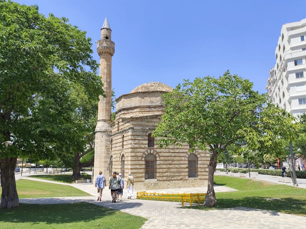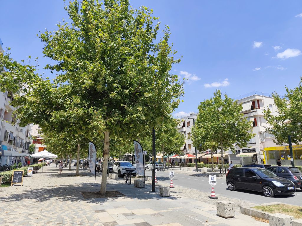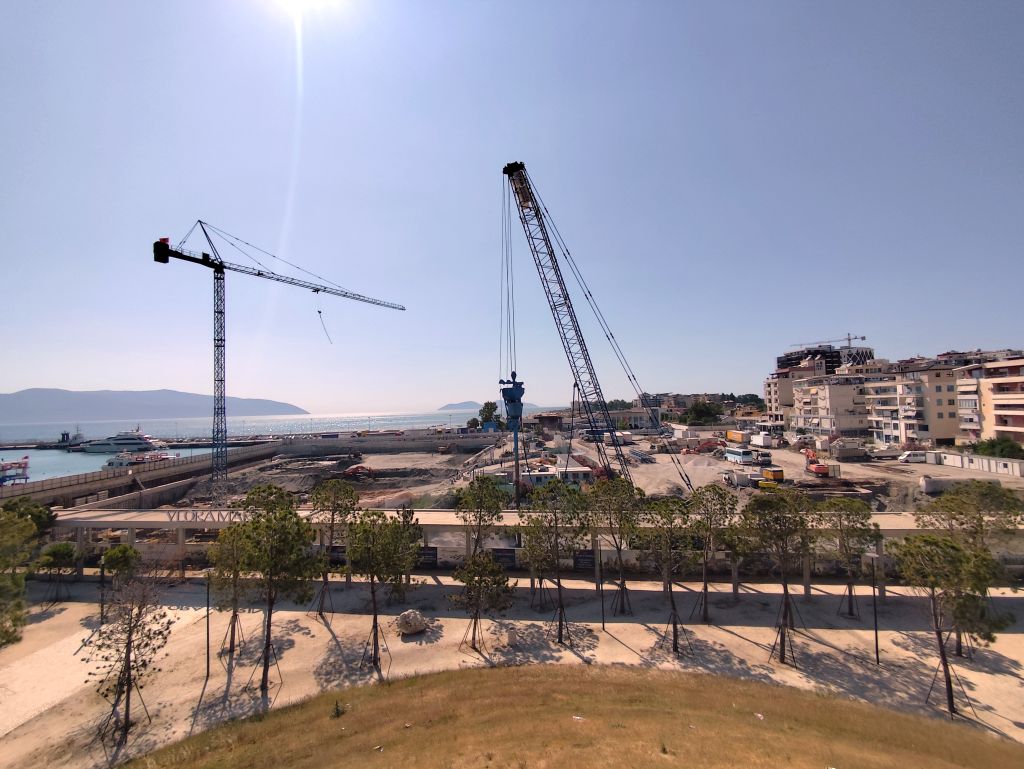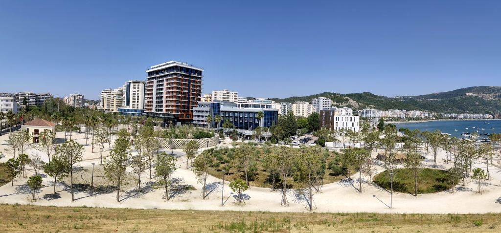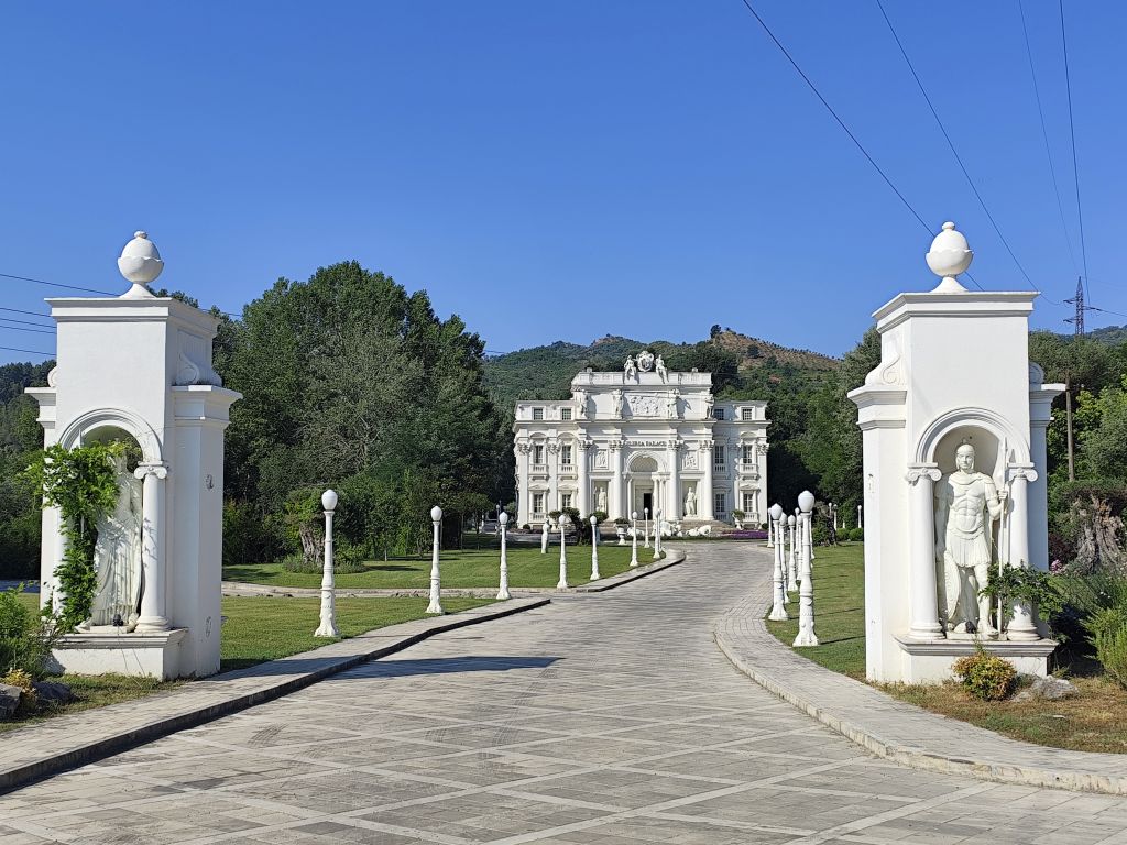 Ich muss mich nicht besonders beeilen, mache mich aber doch recht früh am Morgen fertig zur Abfahrt. Ich komme sehr gut durch die Innenstadt durch, doch in der Ausfallstrasse Richtung Durres ist ein Riesenstau wegen Verkehrsüberlastung. Ich kämpfe mich durch (zwischen den Fahrzeugkolonnen) und schliesslich geht es zügiger weiter. Die Strasse ist diesmal miserabel, es hat überall Flicken und Schlaglöcher. Kurz vor Pezë e Vogël fällt mir ein unglaublich prunkvoller Palast auf, den sich wohl ein Exilalbaner hingebaut hat. In Durres muss ich nachtanken. Der Tankwart hat keinerlei Münzen, ich denke, er will mich betrügen, aber später muss ich feststellen, dass es ausserhalb Tiranas keine Münzen gibt und der kleinste Schein ist 200 Lek (2 Euro). Eine blöde Situation. Ab Durres ist es rund 60km Autobahn, auf die ich eigentlich gar nicht dürfte, denn die Albaner haben die Verbotsschilder 1:1 von den Italienern übernommen. Um die Mittagszeit komme ich im Hotel „Kapsul“ in Vlorë an und tatsächlich ist es ein Kapselhotel. Ich checke ein und laufe in die Stadt. Diese kommt mir diesmal noch hässlicher als das letzte Mal vor, wie in Marbella riesige Wohnblöcke am Meeresufer, eine Verkehrsmoloch, der sich durch die Strassen zwängt, Preise doppelt so hoch wie in Tirana und nirgends Schatten. In einem Restaurant bestelle ich „Padina“, aber es ist nicht dasselbe wie in Tirana, hier kriege ich eine Omelette mit etwas Aufschnitt und Käse drin. Ungünstig. Trotzdem laufe ich die zwei Kilometer in die etwas im Landesinneren gelegene Altstadt, die aber, mit Ausnahme der hübschen und stets geschlossenen Muradie-Moschee, wenig zu bieten hat. Ruinen von alten Wohnhäusern, ohne Dach, Türen und Fenster, dazwischen moderne Bauten. Ich bestelle einen „Souvlaqe“ und erhalte den grössten, den ich je gegessen habe. Im Stadtpark unter den Bäumen und neben den Denkmälern verzehre ich ihn, dann laufe ich wieder zurück, diesmal einen anderen Weg. Ich besuche noch die Marina, die noch im Bau ist, sowie den Lungomare mit dem (temporär dort stationierten) Riesenrad, aber all dies interessiert mich wenig. So kehre ich ins Hostel zurück, lese etwas, nicke immer wieder ein, so dass der Receptionist, der es auf dem Bildschirm gesehen hat, sich Sorgen um meine Gesundheit macht. Wahrscheinlich sehe ich wie gestorben aus. Um sieben Uhr laufe ich nochmals ins Zentrum, kaufe etwas Käse und möchte nahe des Hostels ein Brötchen dafür kaufen, aber die Bäckerei hat nur riesige Weissbrote. So muss ich nochmals zurück ins Stadtzentrum, wo eine andere Filiale derselben Bäckerei noch einen ganzen Sack davon hat. Ich esse mein Käsebrot im Schatten hinter der Universität und kehre dann ins Hostel zurück.