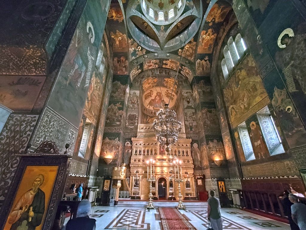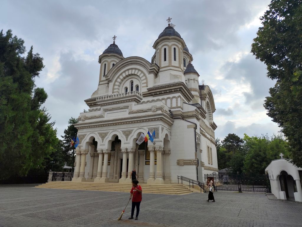 Heute habe ich keinen Plan, weil es in Galati keine eigentlichen Sehenswürdigkeiten gibt. Ich laufe zur zirka drei Kilometer entfernten Kathedrale, wo gerade ein Gottesdienst stattfindet. Nicht weit davon ist der „Galati Public Garden“, der Stadtpark, entfernt. Ein schöner, grosser Park mit vielen Möglichkeiten für die Kinder zum Spielen. Fast gegenüber liegt der Episkopalpalast, dessen Garten öffentlich zugänglich ist. Mein nächster Stopp ist beim Muzeul de Arta Vizuala (Kunstmuseum). Immerhin ist es offen. Es gibt – mit einer Ausnahme – nur rumänische Künstler. Höhepunkte, die ich herausheben möchte, sind: Camil Ressu, Bauer beim Säen; Nicolae Vermont, Anwesen, Florin Lucian Marin, Iron Dress, Silvia Radu, zwischen Blumen und Früchten. Es hat auch einige jüdische Künstler wie Max Herman Maxy oder Victor Brauner. Im Erdgeschoss hat es wilde Bronzeplastiken von Liviu Bumbu. Nach dem Museumsbesuch besuche ich den gegenüber liegenden Markt, wohl das einzige Quartier in Galati, das etwas belebt ist. Der Markt zeigt aber auch klare Anzeichen von Rezession. Viele Stände sind nicht mehr besetzt, die Hallen halbleer. In einem kleinen Restaurant esse ich zu Mittag. Ich besuche die Biserica Mavramol, wo ebenfalls ein Gottesdienst stattfindet. Ich kehre zu meiner Unterkunft zurück und ruhe etwas (die Klimaanlage hilft mir dabei ungemein). Dann muss ich das Motorrad zur Weiterfahrt bereit machen. Ich fahre zur sehr weit entfernten Tankstelle. Auf dem Weg dahin sehe ich eine rumänische Dampflok, sie scheint mir eine BR50 zu sein. Ich tanke auf, schmiere und spanne die Kette. Dann fahre ich zur Unterkunft zurück und will einen Spaziergang an der Donau machen. Doch als ich rund zwei Kilometer gegangen bin, fängt es bedrohlich an zu donnern. Auch fängt es an zu tröpfeln. Da ich nicht in einem Gewittersturm gefangen sein möchte, laufe ich rasch zurück. Auf dem Weg kaufe ich noch im Supermarkt mein übliches widerliches Abendessen aus Gemüse und etwas Fleisch. Es donnert weiter, aber der Gewittersturm kommt nicht.