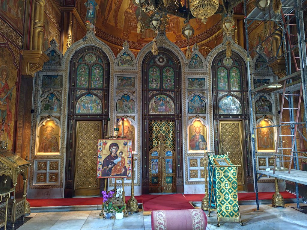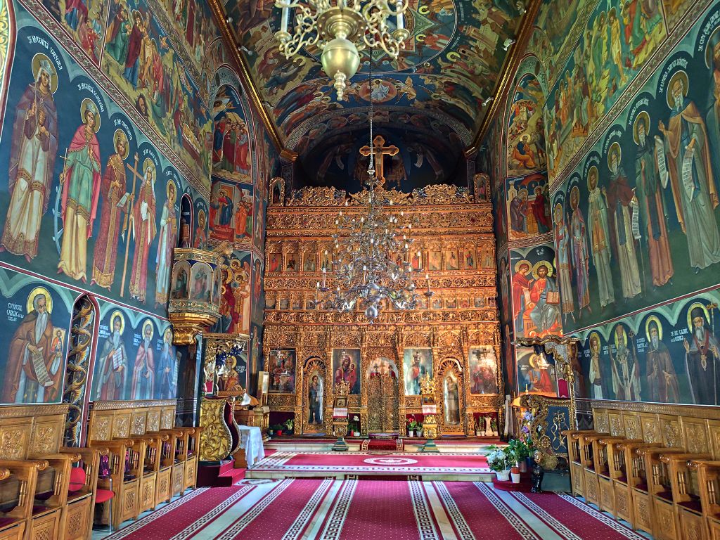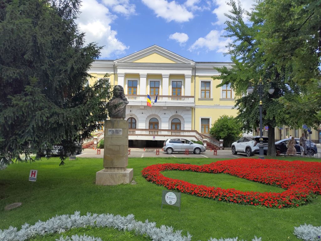 In der Nacht konnte ich kaum schlafen, da um halb zwölf Uhr zwei Besoffene in den Schlafsaal kamen und sich die längste Zeit quer über den Schlafsaal laut unterhalten haben. Kaum waren die eingeschlafen, fing ein Türenschletzen und Licht an- und abschalten statt. Als auch das vorbei war, klingelte ein Handy ununterbrochen und niemand nahm ab. Am Morgen um sechs Uhr stehe ich auf, packe und fliehe. Ich fahre auf sehr guten Strassen durch das sonnige, aber noch kalte Land. In Calaraȿi wollte ich eigentlich nachtanken, aber da ich nur mit 70 km/h fahre, ist mein Tank noch recht voll. Erst in Ungheni muss ich nachfüllen. Jetzt geht es ein paar Kilometer der Grenze entlang, bis der Grenzposten kommt. Die Grenzformalitäten sind aber relativ problemlos, in einer halben Stunde habe ich die EU-Aussengrenze passiert und bin wieder in Rumänien. Es ist noch vor 11 Uhr. Die wenigen Kilometer bis nach Iaȿi sind rasch passiert. Dort werde ich, obwohl ich viel zu früh ankomme, im Hostel sehr freundlich empfangen und darf den Scooter direkt vor den Eingang stellen. Ich lasse das Gepäck auf dem Scooter und gehe zum Bulevard Carol I, wo ich mir erst einen ziemlich luxuriösen Hamburger leiste, dann Milch und Wasser einkaufe. Vor dem Cercul Militar stehen viele Kanonen aus dem zweiten Weltkrieg. Die Universität ist in einem eindrucksvollen Gebäude aus der Jahrhundertwende. Als ich zurück bin, ist mein Zimmer bereit. Ich richte mich ein, ziehe mich um und laufe gleich wieder in die Stadt und besichtige: Biserica (Kirche) Sfintii 40 de Mucenici (1760), Militärspital, Palatul Copiilor, Parcul Voievozilor mit acht Königsstatuen, Piaţa Mihail Eminescu, Strada Alexandru Lapusneanu (wo vor dem zweiten Weltkrieg all die jüdischen Geschäfte waren), ein Wischtram von 1922 ist hier aufgestellt, Biserica Banu, Piaţa Unirii, Starea Civila, Passage Emil Brumaru, Teatrul National, Bulevardul Stefan cel Mare, Rathaus, Catedrala Metropolitana (innen völlig eingeschwärzt von den Kerzen), Catedrala Veche (alte Kathedrale), Manastirea Sfintii Trei Ierarhi (1639), welches unglaublich detaillierte Wand-Sgraffitti hat und auch innen sehr schön ist, Complexul Muzeal National, Piaţa Palatului, Haus Dosoftei (1677), Biserica Sfantul Nicolae Domnesc, wo gerade eine Hochzeit stattfinden soll. Auf dem Bulevardul Stefan cel Mare laufe ich wieder zurück, an der Piaţa Mihail Eminescu beleuchtet die Sonne jetzt den studentischen Kulturpalast und das Jahrhundertwende-Gebäude der Staatsanwaltschaft. Im Supermarkt kaufe ich Brot und Käse, das wird mein Znacht. Ich bin todmüde, weil ich kaum geschlafen habe. Ich bin froh, dieses Hostel gewählt zu haben, es scheint mir sehr angenehm zu werden.