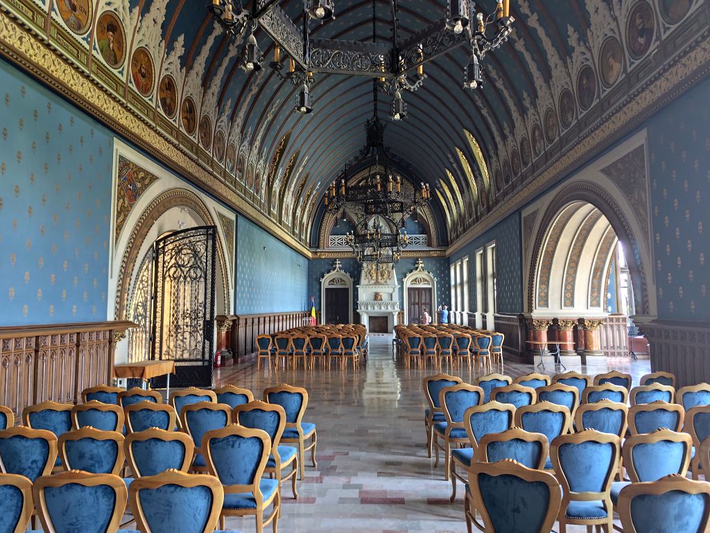 Ich habe ja gestern schon einen Grossteil der Sehenswürdigkeiten gesehen und bummle deshalb heute in die Stadt. Besuche die Piaţa Independentei, die Biserica Sfantui Spiridon (St. Spiridonkirche), die grosse Synagoge (leider geschlossen), die halbversenkt ist im Boden, weil damals die Vorschriften dies erforderten. Davor ist der Platz der rumänisch-israelischen Freundschaft mit einem Denkmal für die 13‘000 Opfer des Pogroms von Jassy (1941). Mein nächster Besuch gilt dem Kloster Golia, wo gerade ein sehr gut besuchter Sonntagsgottesdienst stattfindet. Die Leute stehen sogar vor der Kirche, wobei der Gottesdienst per Lautsprecher dorthin übertragen wird. Ich komme wieder ins Zentrum und gelange zur Gheorghe Asaki Schule, der Chimärenstatue (eine Wölfin mit Menschengesicht und acht Glocken als Zitzen) und dem Palatul Culture. Da es noch nicht ganz zehn Uhr ist, laufe ich einmal um den Palast herum. Man hat rund um den Palastgarten ein Einkaufszentrum gebaut, aber das Ganze ist so schön gestaltet, dass es nicht stört, denn jetzt wird der Palastgarten, in den eine grosse Treppe mit einem Wasserspiel führt, von lauschigen Cafés gesäumt. Im Palastgarten findet gerade ein Streetfood Festival statt, deshalb stehen zahlreiche Buden dort. Sobald das Museum öffnet, kaufe ich ein Eintrittsbillett für das historische und das Technikmuseum. Erst erkunde ich aber den Palast, der in einem ganz hervorragenden Zustand ist. Die Woiwodenhalle ist prächtig, in der Henri-Coanda-Halle hat es auf der linken Seite Fenster, auf der rechten Seite aufgemalte Fenster. Vor dem historischen Museum steht ein mehr als acht Meter langer Einbaum, der als Schwimmer für eine Pontonbrücke im Mittelalter gedient haben soll. In der rechten Halle hat es eine ganz hervorragende Ausstellung über die Cucuteni-Kulturen A (ca. 4‘700-3‘900 BC), A-B (4‘200-3‘600 BC) und B (3‘800-3‘100 BC). Es werden unglaublich gut erhaltene Keramikgefässe mit schönen Glasuren gezeigt, sowie eine Cucuteni-Behausung. In der linken Halle wird die Frau, auch die Göttinnen, in römischer Zeit thematisiert. Nun besuche ich das Technikmuseum. Es fängt an mit Haushaltsgegenständen und –maschinen. Hervorzuheben ist die sowjetische Thermoregeneratorlampe, welche mit einer Petrollampe piezoelektrischen Strom produziert. Danach kommen die Radiogeräte, von den allerersten hin zu den Geräten in der Sowjetzeit, welche zum Teil lokal produziert wurden und sich äusserlich nicht von westlichen Geräten unterschieden. Besonders interessant ist jedoch ein Autoradio Philco Transitone (1933), das über zwei Bowdenzüge bedient wurde. Bei den Computern erfahre ich, dass in Rumänien auch eine kleine Computerindustrie bestand, es wurde sogar ein IBM-PC-Klon gebaut (IFF-PC) und verschiedene Kleincomputer (CUB01, Junior 80, HC2000 Homecomputer). Eine grosse Sektion behandelt die Musikautomaten, von denen offenbar viele in Rumänien gelandet sind, einige davon aus der Schweiz. Danach kommen die Phonographen, alle importiert, die Kameras, Elektromotoren, eine Modell-Dampfmaschine, Telefonapparate meist aus russischer Produktion, Fernsehgeräte (besonders auffallend ein russisches Modell mit winzigem Bildschirm und grosser Linse davor, sowie ein Modell „Leningrad“ aus der DDR, mit Radio und ebenfalls kleinem Bildschirm. Für das Mittagessen gehe ich zu „Auchan“, wo ich mir am Buffet selbst etwas zusammenstellen kann, natürlich ohne Kohlenhydrate. Danach laufe ich zum Bahnhof. Dort sehe ich ein Laden, der mit „Second Hand Marfa Elvetia“ angeschrieben ist, das heisst „Second-Hand aus der Schweiz“. Meine nächste Etappe ist lang und steil den Berg hinauf, zum „Gradina Copou“, einem schönen, gepflegten Park mit vielen farbigen Blumenbeeten und Wasserspielen, sowie einem Seerosenteich mit einer Brücke darüber. Im „Mega Image“ kaufe ich noch etwas für das Abendessen ein, dann kehre ich ins Hostel zurück, da ich müde und durstig bin.