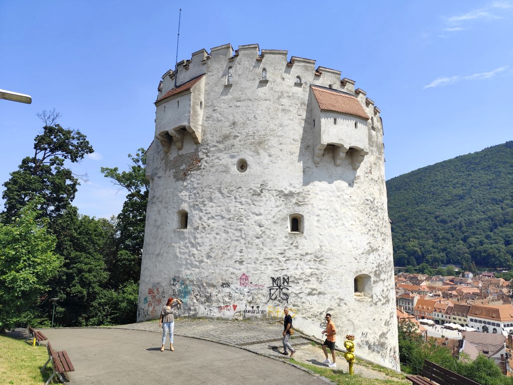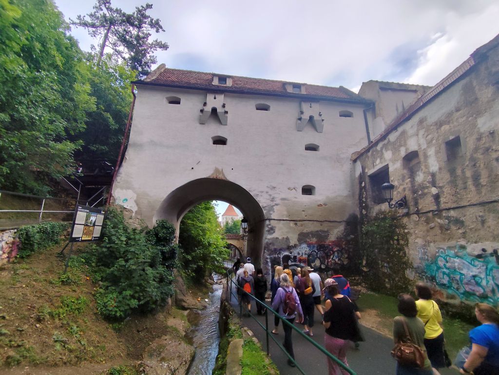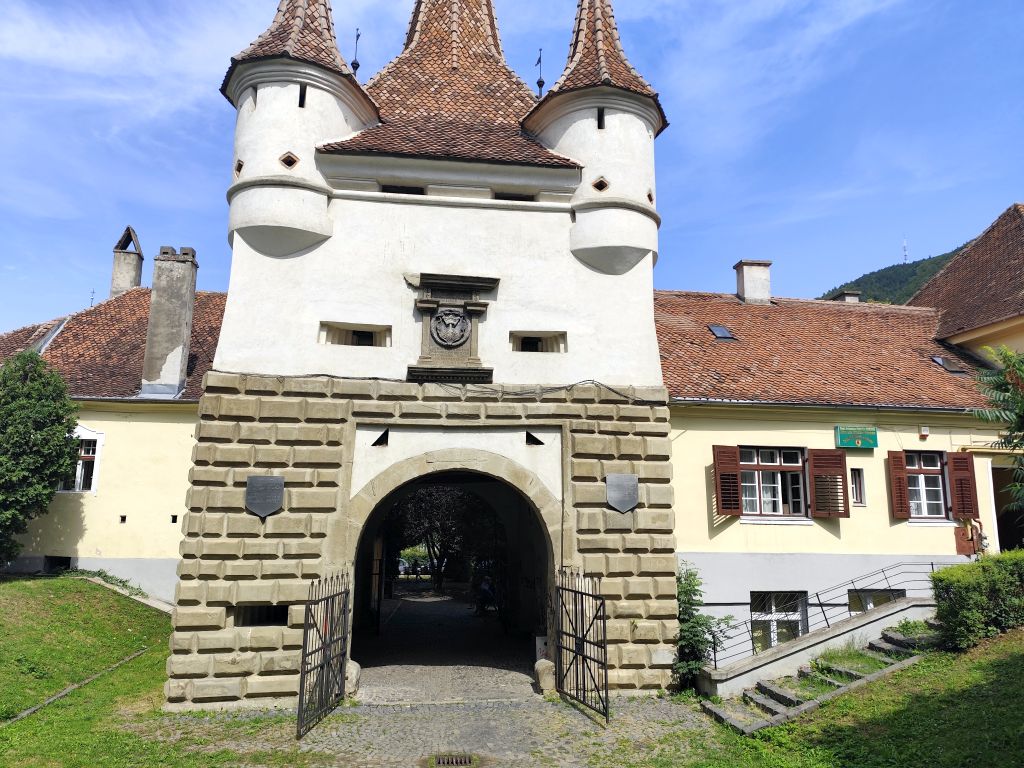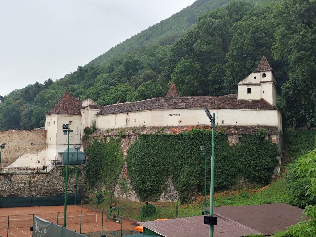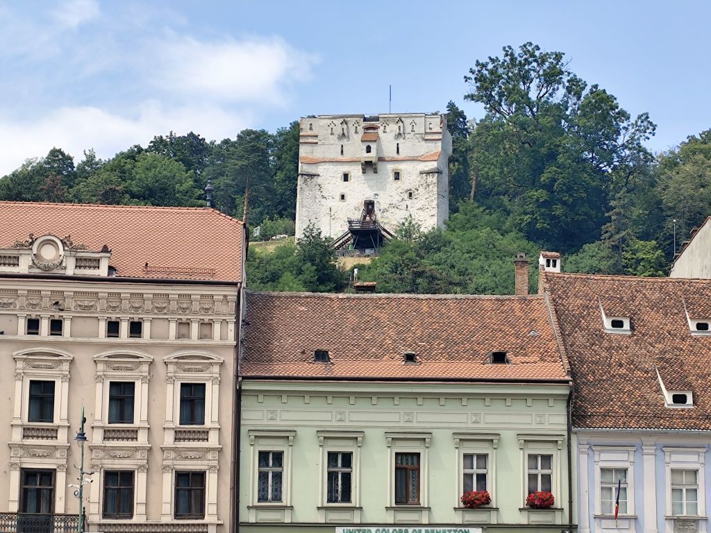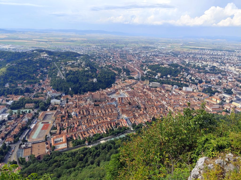 In der Nacht hat es begonnen zu regnen. Ich laufe trotzdem zur Burgpromenade. Dort gibt es die Weberbastion, den Turm der Künste, den Seilerturm, die Seilerbastion, den Jägerturm, den Tischlerturm und die Tuchmacherbastion. Bis ich zurück zur Piaţa Sfatului bin, regnet es dermassen stark, dass meine Schuhe total durchnässt sind. Ich warte auf die „Free Walking Tour“, die um 10:30 Uhr beginnt. Wir machen folgenden Rundgang: Schwarze Kirche, Strada Sforii (ein schmales Gässchen zwischen den Häusern, damit die Feuerwehr schneller durchkonnte), Katharinas Haus (Katharina war die Mätresse von Vlad Țepeş), westliche Stadtmauer, Katharinentor, Scheitor, Honterusschule (heute die Maternité), Graftbastei, Piaţa Sfatului, die orthodoxe Maria-Himmelfahrts-Kathedrale, die hinter einer Häuserreihe versteckt ist. Im Supermarkt kaufe ich mir ein Hühnerbein und Potato Wedges, eine unpassende, aber ausgezeichnete Mahlzeit. Dann besuche ich die Schwarze Kirche. Innen ist sie eigentlich schlicht, aber überall hängen Orientteppiche, welche der Kirche geschenkt worden waren. Die Orgel soll die zweitgrösste Europas sein. Es hat einige kleinere Orgeln in der Kirche. Die Chorgestühle sind mit deutsch beschrifteten Malereien geschmückt. Das schönste Chorgestühl ist dasjenige der Schreiner, vorne rechts vom Altar. Die Bänke für das Volk haben umklappbare Lehnen, so dass man auch mit dem Gesicht gegen die grosse Orgel sitzen kann. In einem Seitenabteil sind eindrucksvolle Grabplatten in die Wand eingelassen. Jetzt hört der Regen auf und es kommt die Sonne heraus. Ich laufe zurück zur Piaţa Sfatului, dann zur Graft-Bastion, doch die Treppe ist mir zu schlammig, so dass ich den längeren Weg nehme zum Schwarzen Turm. Dieser ist geschlossen, doch man hat eine schöne Aussicht über Braȿov. Danach laufe ich zum Weissen Turm, von wo aus die Aussicht sogar noch besser ist. Nun laufe ich zur Zitadelle. Leider ist sie geschlossen, so dass ich sie nur von aussen betrachten kann. Die Backsteinmauern sind kritisch am Abbröckeln. Drei Lagen Backsteine sind schon weggebrochen, wenn nicht bald etwas unternommen wird, werden sie einstürzen. Ich gelange zum Parc N. Titulescu, der lediglich mit Hecken gestaltet ist. Wieder im Städtchen gelange ich in die Strada Michael Weiss, laufe zur Piaţa George Enescu und weil die Sonne so schön scheint, nochmals zum Katharinentor und zum Scheitor. Danach besuche ich die Neolog-Synagoge Beit Israel, die innen ganz in Weiss gehalten ist. Eine Kamera ist installiert, um die Gottesdienste zu übertragen. In den Fenstern hängen Wappenscheiben von allen grösseren Ortschaften Israels. Noch einmal komme ich am Katharinenhaus vorbei, laufe durch die Strada Apollonia Hirscher, um die Weberbastei herum und gelange auf den Weg zum Stadtberg Tampa. Der Weg beginnt mit mässiger Steigung, wird dann aber immer steiler und schwieriger. Völlig verschwitzt gelange ich nach einer Stunde erst zur Burgruine, dann auf den Gipfel des Tampa. Von hier aus hat man eine schöne Aussicht über die Altstadt von Brasov. Der Abstieg ist noch etwas schwieriger, denn es geht über Kalkstein-Felsbrocken, rutschige Stellen, im ewigen Zickzack nach unten. Man sieht von hier, dass die Seilbahn nicht nur ausser Betrieb ist, wie es heisst, sondern völlig demontiert wurde. Als ich wieder unten bin, kaufe ich im „Mega Image“ Linsen, Würstchen, Joghurt und Wasser für den Znacht, um für die Kartoffeln beim Mittagessen wieder gutzumachen.