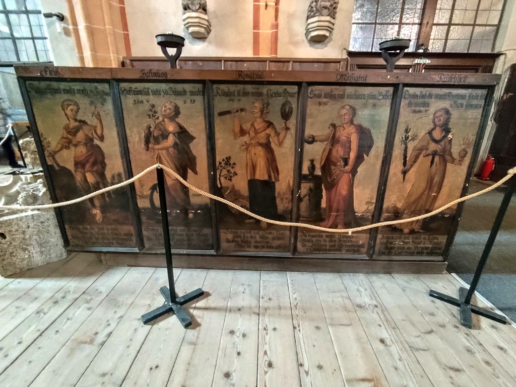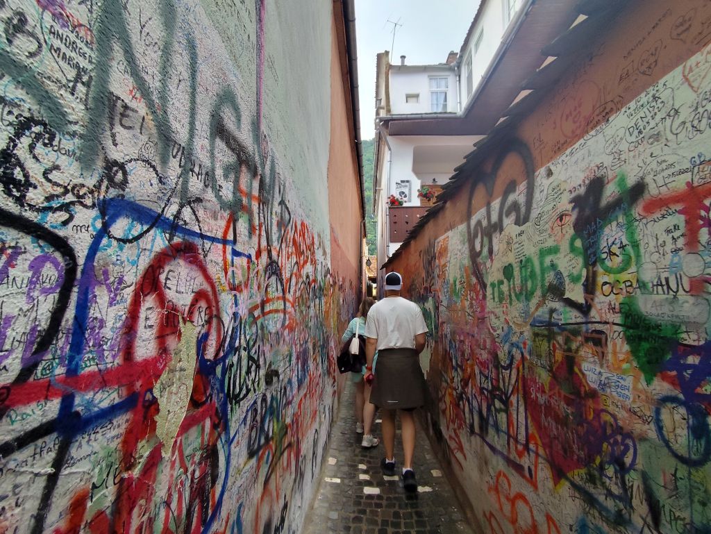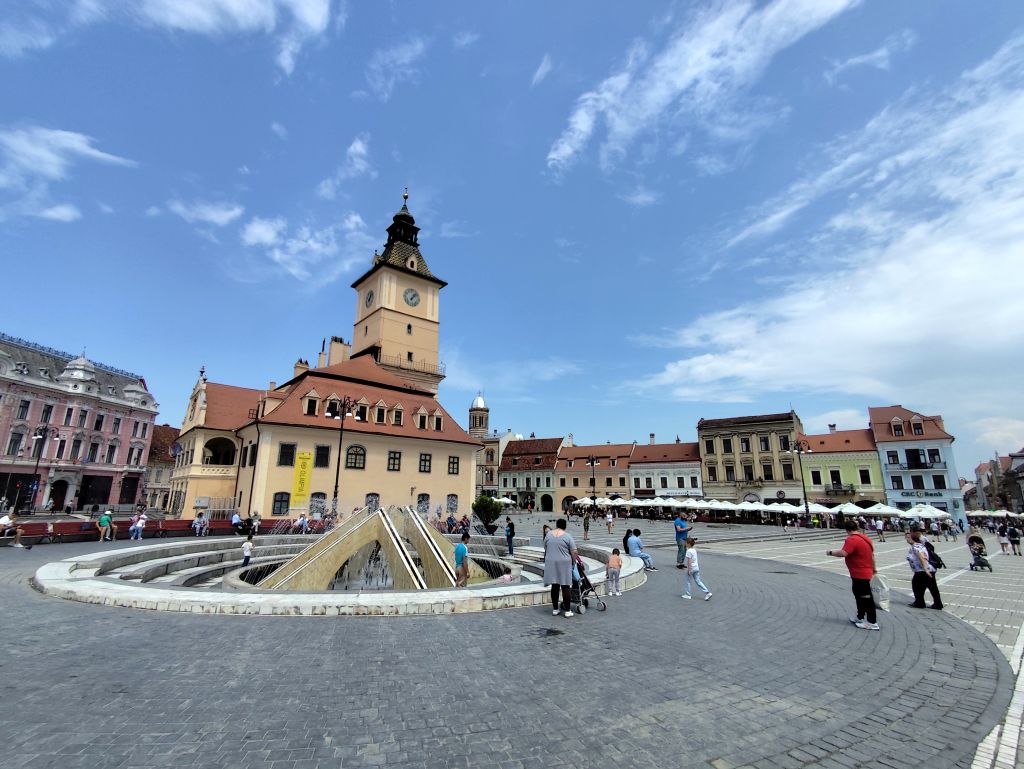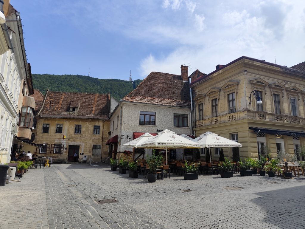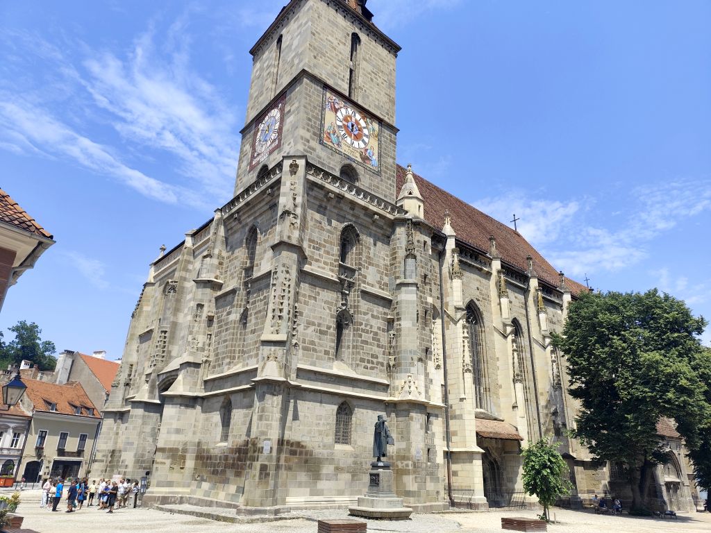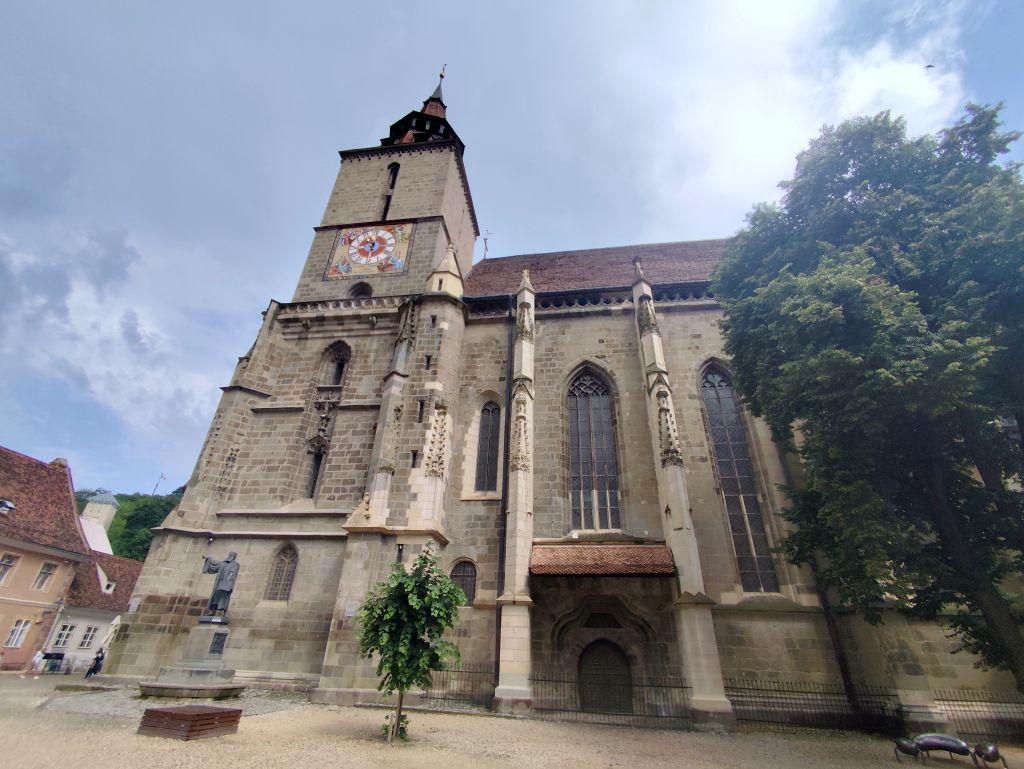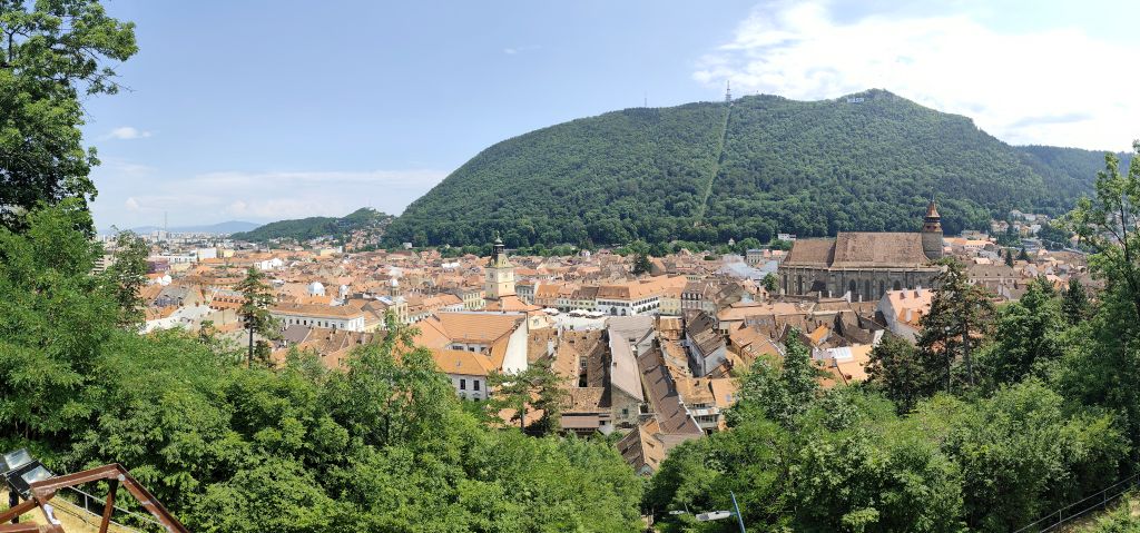 In der Nacht hat es begonnen zu regnen. Ich laufe trotzdem zur Burgpromenade. Dort gibt es die Weberbastion, den Turm der Künste, den Seilerturm, die Seilerbastion, den Jägerturm, den Tischlerturm und die Tuchmacherbastion. Bis ich zurück zur Piaţa Sfatului bin, regnet es dermassen stark, dass meine Schuhe total durchnässt sind. Ich warte auf die „Free Walking Tour“, die um 10:30 Uhr beginnt. Wir machen folgenden Rundgang: Schwarze Kirche, Strada Sforii (ein schmales Gässchen zwischen den Häusern, damit die Feuerwehr schneller durchkonnte), Katharinas Haus (Katharina war die Mätresse von Vlad Țepeş), westliche Stadtmauer, Katharinentor, Scheitor, Honterusschule (heute die Maternité), Graftbastei, Piaţa Sfatului, die orthodoxe Maria-Himmelfahrts-Kathedrale, die hinter einer Häuserreihe versteckt ist. Im Supermarkt kaufe ich mir ein Hühnerbein und Potato Wedges, eine unpassende, aber ausgezeichnete Mahlzeit. Dann besuche ich die Schwarze Kirche. Innen ist sie eigentlich schlicht, aber überall hängen Orientteppiche, welche der Kirche geschenkt worden waren. Die Orgel soll die zweitgrösste Europas sein. Es hat einige kleinere Orgeln in der Kirche. Die Chorgestühle sind mit deutsch beschrifteten Malereien geschmückt. Das schönste Chorgestühl ist dasjenige der Schreiner, vorne rechts vom Altar. Die Bänke für das Volk haben umklappbare Lehnen, so dass man auch mit dem Gesicht gegen die grosse Orgel sitzen kann. In einem Seitenabteil sind eindrucksvolle Grabplatten in die Wand eingelassen. Jetzt hört der Regen auf und es kommt die Sonne heraus. Ich laufe zurück zur Piaţa Sfatului, dann zur Graft-Bastion, doch die Treppe ist mir zu schlammig, so dass ich den längeren Weg nehme zum Schwarzen Turm. Dieser ist geschlossen, doch man hat eine schöne Aussicht über Braȿov. Danach laufe ich zum Weissen Turm, von wo aus die Aussicht sogar noch besser ist. Nun laufe ich zur Zitadelle. Leider ist sie geschlossen, so dass ich sie nur von aussen betrachten kann. Die Backsteinmauern sind kritisch am Abbröckeln. Drei Lagen Backsteine sind schon weggebrochen, wenn nicht bald etwas unternommen wird, werden sie einstürzen. Ich gelange zum Parc N. Titulescu, der lediglich mit Hecken gestaltet ist. Wieder im Städtchen gelange ich in die Strada Michael Weiss, laufe zur Piaţa George Enescu und weil die Sonne so schön scheint, nochmals zum Katharinentor und zum Scheitor. Danach besuche ich die Neolog-Synagoge Beit Israel, die innen ganz in Weiss gehalten ist. Eine Kamera ist installiert, um die Gottesdienste zu übertragen. In den Fenstern hängen Wappenscheiben von allen grösseren Ortschaften Israels. Noch einmal komme ich am Katharinenhaus vorbei, laufe durch die Strada Apollonia Hirscher, um die Weberbastei herum und gelange auf den Weg zum Stadtberg Tampa. Der Weg beginnt mit mässiger Steigung, wird dann aber immer steiler und schwieriger. Völlig verschwitzt gelange ich nach einer Stunde erst zur Burgruine, dann auf den Gipfel des Tampa. Von hier aus hat man eine schöne Aussicht über die Altstadt von Brasov. Der Abstieg ist noch etwas schwieriger, denn es geht über Kalkstein-Felsbrocken, rutschige Stellen, im ewigen Zickzack nach unten. Man sieht von hier, dass die Seilbahn nicht nur ausser Betrieb ist, wie es heisst, sondern völlig demontiert wurde. Als ich wieder unten bin, kaufe ich im „Mega Image“ Linsen, Würstchen, Joghurt und Wasser für den Znacht, um für die Kartoffeln beim Mittagessen wieder gutzumachen.