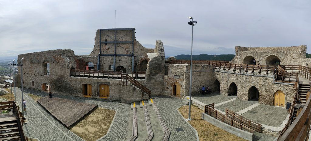 Ich fahre früh los, möchte um 15 Uhr in Timişoara sein. In Cristian halte ich bei der schönen Wehrkirche. Sie ist aber nicht offen, so dass ich nicht hinein kann. Das Navi lotst mich auf die Autobahn, aber ich fahre bei der nächsten Ausfahrt wieder weg und wähle eine bessere Route, die über Landstrassen führt. Es geht durch Bauerndörfer, deren Bewohner vor dem zweiten Weltkrieg sehr wohlhabend gewesen sein müssen, wie die grossen und massiv gebauten Höfe zeigen. Im Kommunismus können die ja wohl kaum entstanden sein. In Miercurea Sibiului hat es wieder eine schöne Wehrkirche, wiederum abgeschlossen. In Deva sieht man von Weitem die Citatea (Burg), die die Spitze eines Hügels krönt. Ich fahre, soweit man kann, hinauf, stelle den Scooter ab und muss dann über eine steile, sehr lange Treppe zur Burg hinaufsteigen. Die Burg selbst ist nur noch eine Ruine, stark restauriert und es wird in Kürze sogar ein Bähnchen hinauf geben. Interessant ist, dass sie drei konzentrische Umfassungsmauern hat. Von der Burg aus hat man eine schöne Aussicht über die Gemeinde Deva. In einem Turm wurde ein Picknickplatz mit elektrischer Beleuchtung und Steckdose eingerichtet, aber alles ist noch sehr unfertig. In Lesnic halte ich bei der Nikolauskirche, ein kleines Steinkirchlein ohne nennenswerte Fenster und einem hölzernen Glockenturm auf dem Dach. In Dobra möchte ich Mittagessen, doch das einzige Restaurant im Dorf hat zu. So gehe ich zum „Profi“ Supermarkt und kaufe etwas zum Essen. Hinter dem Supermarkt hat es ein ganz verfallenes Kirchlein. Es tröpfelt beständig, doch ich ziehe das Regenzeug noch nicht an. In Margina komme ich an einer riesigen Fabrikruine aus Backstein vorbei. In Faget hat jemand doch tatsächlich eine Lissunow Li-2 (russische DC-3) im Garten stehen, leider in jämmerlichem Zustand. Nun muss ich das Regenzeug anziehen, denn der Regen wird stärker. Die letzten 100 Kilometer nach Timosoara schüttet es aus allen Löchern. Trotzdem biegen zwei Autos direkt vor mir ab, so dass ich eine Notbremsung machen muss. Glücklicherweise bin ich nicht gestürzt. Trotz dem Regenzeug kriecht die Nässe langsam in meine Kleider. Auftanken muss ich ja auch noch, trotz Regen. Schliesslich erreiche ich meine Unterkunft, die „Joy Residence“ in Timiȿoara, welche von einer rührigen Frau geführt wird. Sie versucht, mir jeden Wunsch von den Lippen abzulesen. Als ich im Supermarkt Micis gekauft habe, bringt sie mir eine Bratpfanne und erlaubt mir, diese auf dem Gasofen zu braten, bringt mir sogar noch Potato Wedges dazu. Mein Nachbar ist ein deutscher Medizinstudent, der hier sein Erasmus-Jahr verbracht hat.