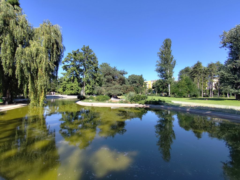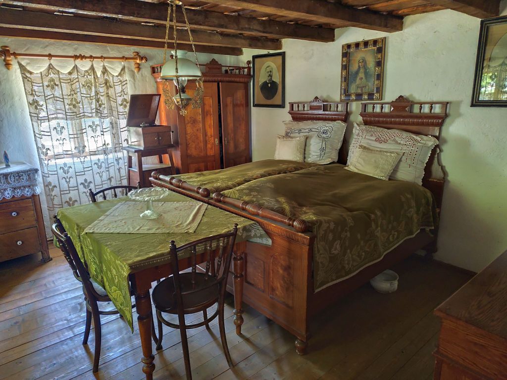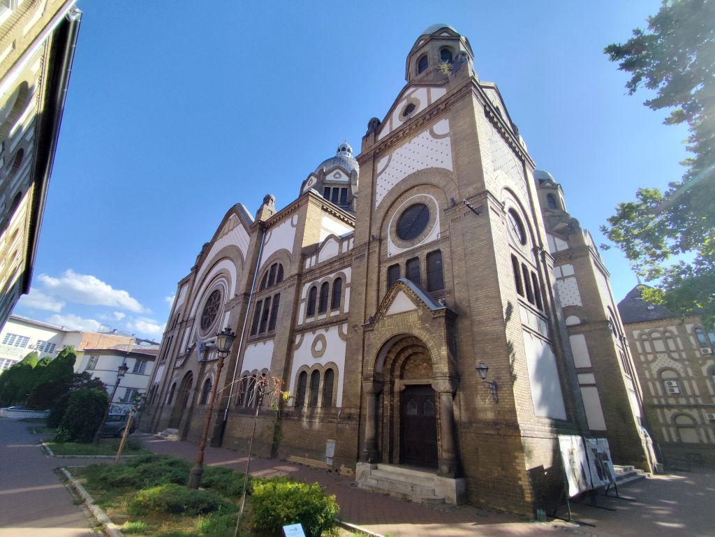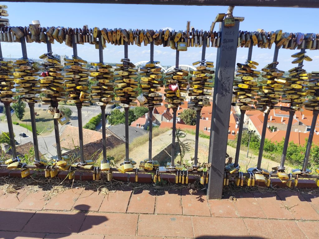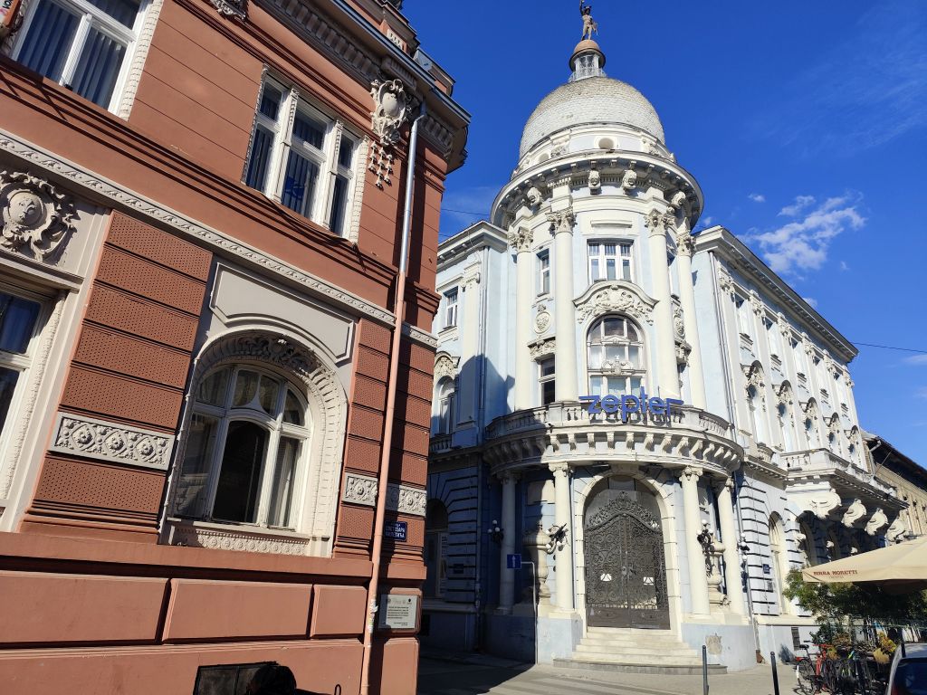 Bis 09:45 bummle ich, denn das Muzeul Satului Banatean öffnet erst um 10 Uhr und ich sollte nicht vor 14 Uhr im nur 150km entfernten Novi Sad eintreffen. Ich lese, schaue Youtube und fahre dann los. So bin ich der erste Besucher heute. Das Museum hat eine Vielzahl von ländlichen Häusern aus dem ganzen Banat. Besonders eindrucksvoll ist das Haus von Bata mit seinem Grasdach, das Haus von Capalnas mit meinem bemoosten Schindeldach, das ukrainische Haus oder das Haus der Deportierten von Baragan (eine schreckliche Geschichte aus dem Kommunismus, die Leute wurden eingesammelt, mit ihrem Hausrat auf einem Feld abgesetzt und sich selbst überlassen). Nun mache ich mich auf den Weg nach Novi Sad. Das Wetter ist wieder schön und warm geworden. In Jimbolia verwende ich meine letzten Lei, um im Lidl Brötli und Hummus zu kaufen. Dann will ich über die Grenze nach Serbien. Aber die rumänischen Behörden können niemanden abfertigen, deren EDV ist abgestürzt. Ich warte eine halbe Stunde, bis sie wieder weitermachen – immer noch besser, als wenn sie die Grenze ganz geschlossen hätten. Endlich kann ich durch. Viele Motorräder kommen mir entgegen, es scheint ein Motorradtreffen irgendwo in der Nähe von Srpska Crnja zu geben. Zrenjanin umfahre ich. In Serbien ist eine Stunde früher. So komme ich fast pünktlich kurz nach 14 Uhr in „Brodski’s Cat Art Hostel“ an. Ich checke ein, ziehe mich um und laufe sofort in die Stadt. Mein Rundgang umfasst: Trg Republike mit einem Denkmal für König Petar Karadjordjevic, orthodoxer Bischofspalast, Trg Slobode, Katholische Kathedrale „Name Marias“. Auf dem Tourismusbüro hole ich mir einen Stadtplan und plaudere lange über Autos. Weiter geht es mit Dunavski Park, Varadinska Duga Brücke, mit der ich zur Festung Petrovaradin gelange. Dort besuche ich das Geburtshaus von Ban Josip Jelacic, das Belgrader Tor, die (zerfallende) Kirche St. Georg, vor der gerade ein Brautpaar Fotos macht, den Uhrenturm oben auf der Festung, die Festungsterrasse, das Leopoldstor. Dann geht es wieder in die Stadt hinein, diesmal zur Synagoge. Das Gebäude ist riesig, imposant. Leider kann man nicht hinein. Unweit davon ist die reformierte Kirche und das serbische Nationaltheater. Beim Zurücklaufen leiste ich mir einen erstaunlich teuren Gyros in einem der kleinen Restaurants in der Altstadt.