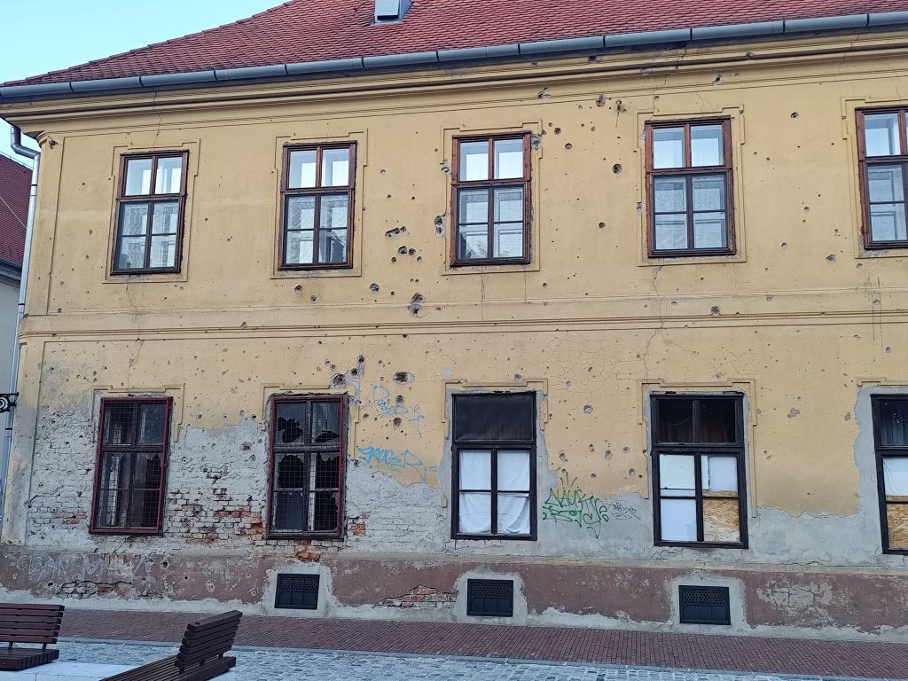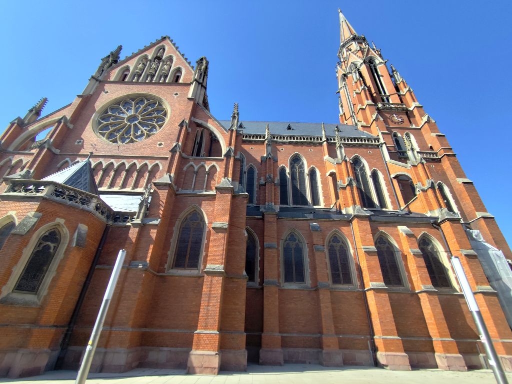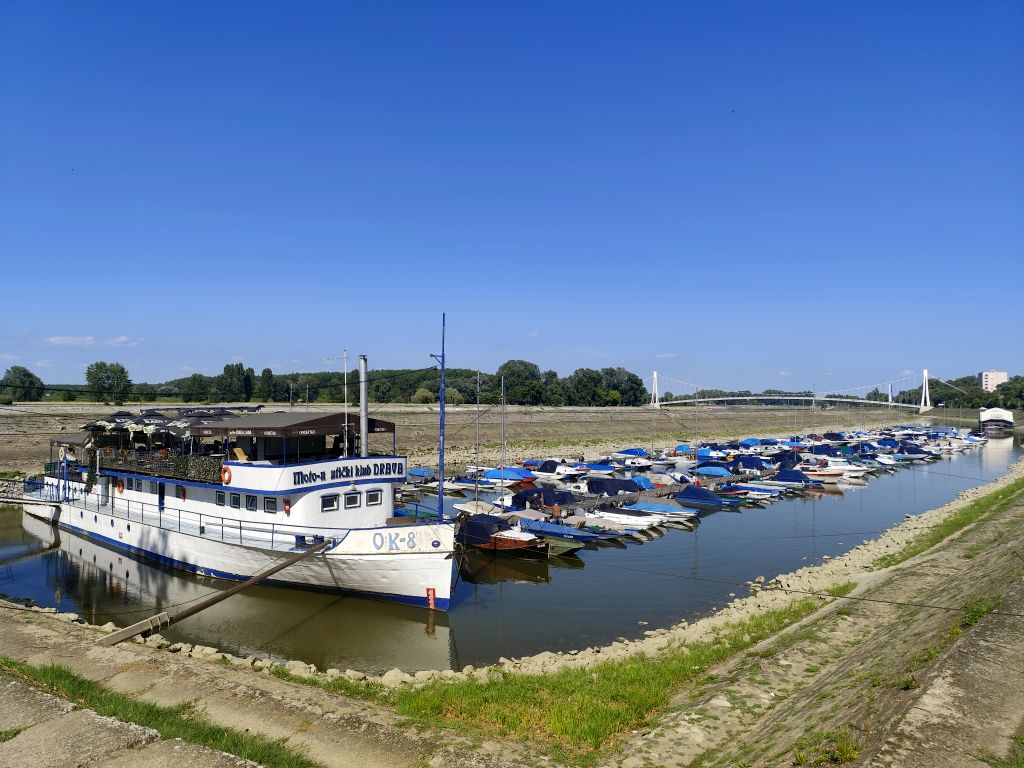 Die Nacht im „Brodsky’s Cat Art Hostel“ war gut. Ich esse mein Frühstück, plaudere mit einer Chinesin und fahre dann um halb neun Uhr ab. Die Sonne scheint. Rasch gelange ich zum Nationalpark Fruska Gora, doch ausser Wald gibt es hier nicht viel zu sehen. Natürlich gibt es einige Klöster hier, sie sind aber sind weit auseinander. Das erste Kloster, das ich suche, finde ich nicht. Ich besuche dann das Kloster Besenovo, ein Neubau, in dem gerade ein Gottesdienst stattfindet. Die Malereien, die sonst die orthodoxen Kirchen schmücken, sind hier noch gar nicht angebracht worden. Das Navi sagt mir, ich solle zur Fähre Futog-Beocin fahren. Als ich dorthin komme, ist niemand da. Ich frage eine Frau, die dort wohnt, wann die Fähre dann fahre. Sie antwortet, um 12 Uhr. Da es erst 10:30 Uhr ist, will ich nicht warten und fahre zurück Richtung Novi Sad, über die Autobahnbrücke über die Donau und in die Stadt hinein und nach einer halben Stunde bin ich dort, wo mich die Fähre abgesetzt hätte. In Backa Palanka muss ich nachtanken und suche etwas zu Essen. Im Lidl gibt es nur Grosspackungen, da gehe ich wieder erfolglos hinaus. Beim Ideal suche ich lange, finde aber nichts Schlaues. Schliesslich nehme ich ein ganz kleines Vollkornbrötchen und eine Packung Chiliwürstchen. Leider vergesse ich beim Bezahlen, meine restlichen serbischen Dinar auszugeben.Ich fahre nun zur Burgruine Bac, wo ich zuallererst mein Mittagessen verzehre. Es stellt sich als besser hinaus, als ich gedacht habe. Die Burgruine ist recht eindrücklich, die Anlage war dreieckig und von Wasser umgeben. In jeder Ecke stand ein Turm, zudem hatte es einen Bergfried im Inneren. Dieser wurde vollständig renoviert und auf drei Etagen werden Funde von diesem Gelände ausgestellt. Oben hätte man eine gute Aussicht, doch es gibt nur den Weiler am Fusse der Burg zu sehen. Bei Karavukovo überquere ich den Donau-Tisa-Kanal. Die Zollformalitäten gehen erfreulich schnell. Die letzten 30 Kilometer bis Osijek sind aber mühsam. Schlimm ist, dass für rund einen Kilometer die Strasse völlig fehlt, stattdessen muss man auf grobem, ungewalztem Schotter fahren, fast nicht möglich mit einem Zweiradfahrzeug, das Zeug rutscht in alle Richtungen und macht zudem die Pneus kaputt. Endlich komme ich in Osijek an und beziehe meine Unterkunft „Perla Inn“. Der Name ist etwas hoch gegriffen, es ist eine eher jämmerliche Absteige, wieder einmal wurde die Bewertung manipuliert. Immerhin hat es Air Condition. Gästeküche, Wifi, Wasserkocher: Fehlanzeige. Ich laufe in die Stadt, die viele Jugendstilhäuser aufweist. Gelange zur ganz aus Backstein gebauten Kathedrale, die ich besuche. Sie hat eine riesige, ziemlich neue Orgel. Ich laufe über den wie ausgestorbenen Pothodnik, gelange zum Jachthafen Zimska Luka (entlang der Drau) und finde entlang der Europa-Avenue eine ganze Reihe schöner, aber verlotterter Jugendstilhäuser, die von den reichen Rechtsanwälten dieser Stadt gebaut und bewohnt wurden. Auch das Postgebäude ist ganz im Jugendstil gehalten. Weil heute Sonntag ist, sind alle Läden zu und auch die meisten Restaurants, ganz im Gegensatz zu Serbien, wo auch am Sonntag alles offen ist. Ich besuche noch die Kapuzinerkirche und komme an einer Erinnerungsplakette an die ehemalige Synagoge vorbei. Sie wurde 1941 niedergebrannt und 1950 abgerissen. Um sieben Uhr gehe ich nebenan im „The Bear“ einen Hamburger essen – wohl der grösste, schwerste und beste, den ich je gegessen habe. Danach laufe ich zur Festung (Tvrda), die das eigentliche Stadtzentrum darstellt. Hier herrscht das Leben, das ich im Zentrum vermisst habe. Hier gibt es Restaurants, die herausgestuhlt haben. Leider sind viele Gebäude in einem miserablen Zustand und überall sieht man noch die Einschüsse vom jugoslawischen Krieg. Da es dunkel wird, laufe ich zurück.