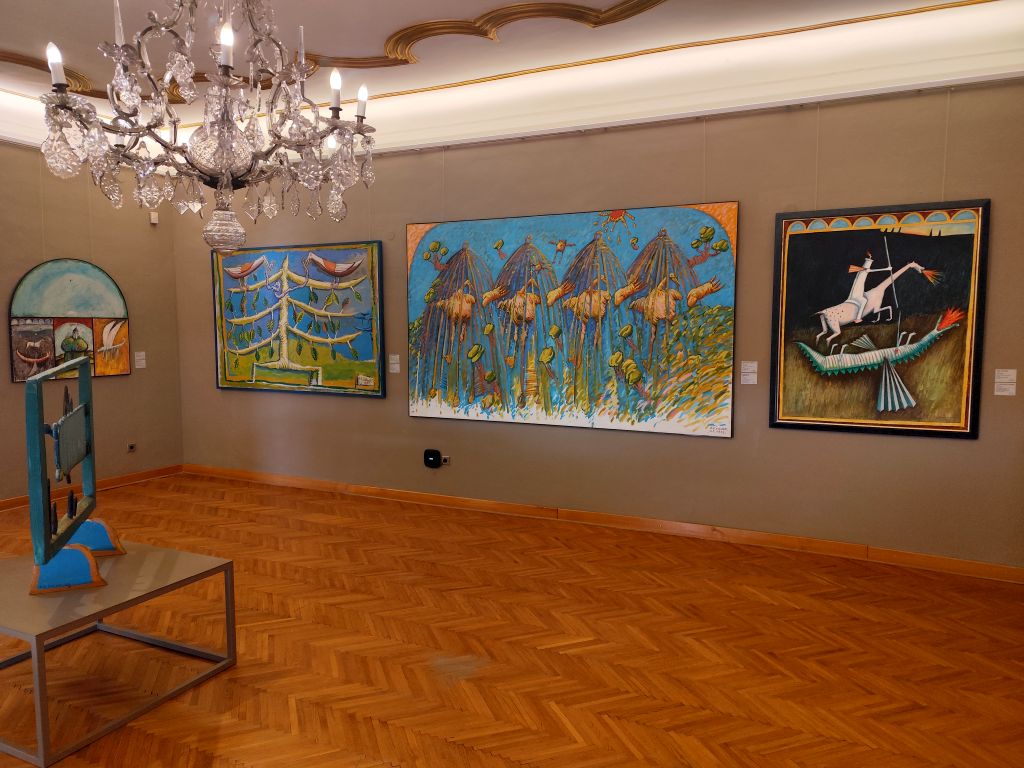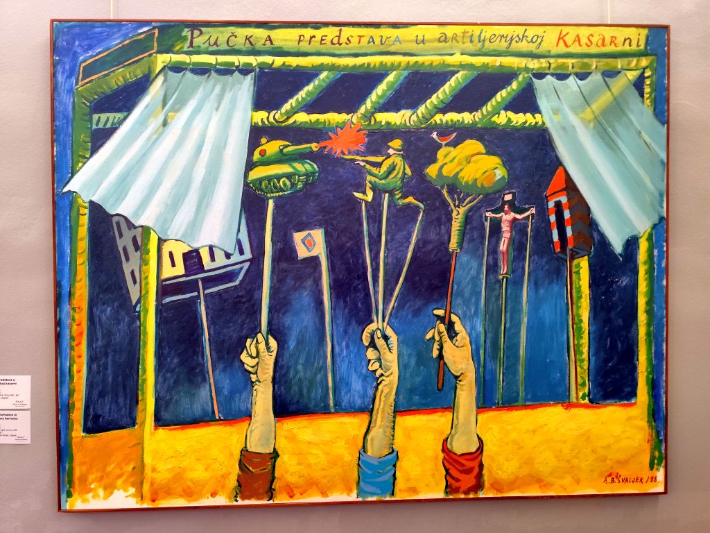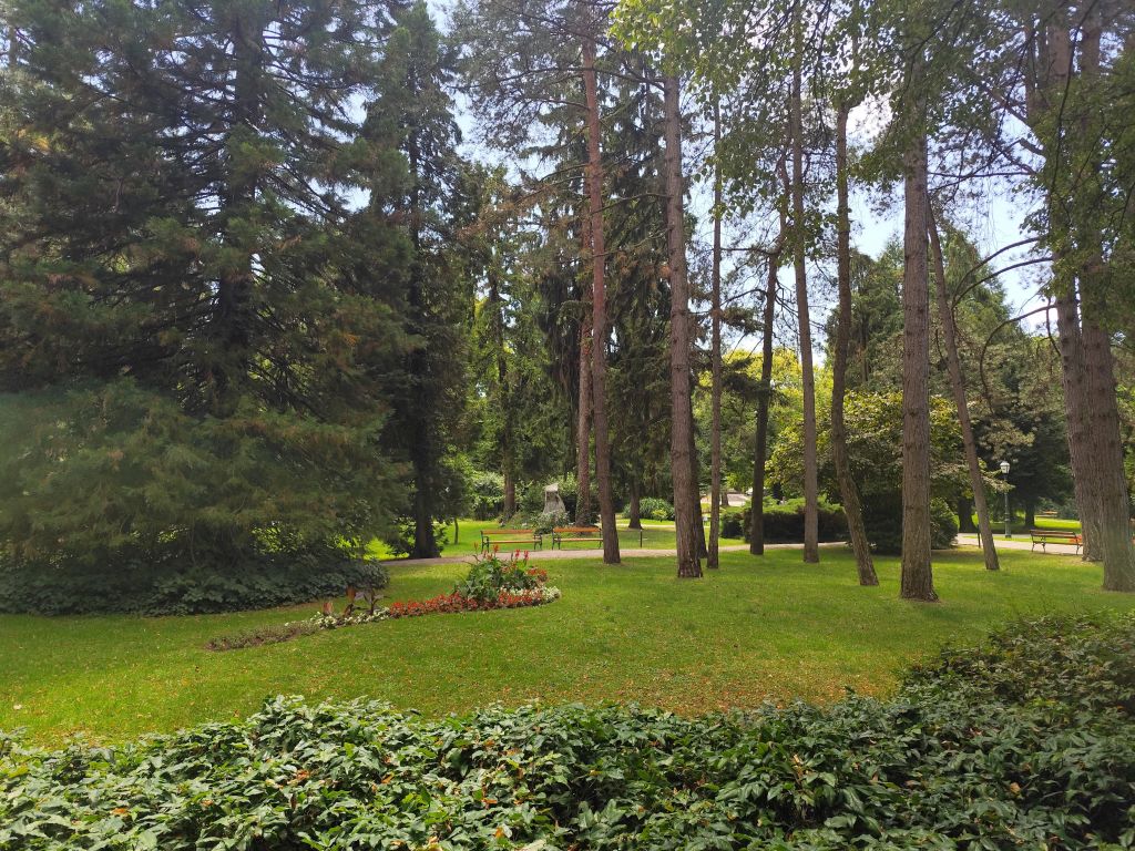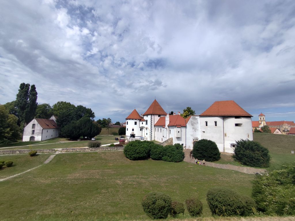 Heute habe ich nicht viel zu tun und kann bummeln. Der letzte Aufenthalt vor meiner beschleunigten Fahrt nach Norwegen. Deshalb muss ich noch rasch meine Wäsche machen. Die Waschmaschine hat aber unglaublich lange – 1¾ Stunden! Ich hänge die Wäsche nach draussen, aber der Himmel ist dunkel mit Regenwolken bedeckt und die Wetter-App bringt eine Gewitterwarnung. Ich laufe in die Stadt, zur Touristeninformation, wo ich mir eine Karte hole. Leider ist im Moment wenig zu erkunden in Varazdin, denn die Burg ist wegen Renovierungsarbeiten geschlossen. Ich besuche die Kathedrale, welche ausser einem wie bei den anderen Kirchen sehr dunklen, gotischen Altar, Kanzel und Seitenkapelle wenig Schmuck aufweist. Die blauen Marmorsäulen, musste ich feststellen, sind nur Gips und Farbe. Ich laufe zur Festung und mache diesmal Fotos von der „Schoggiseite“, dann laufe ich zum nahen Palast Sermage, wo ich die Retrospektive des Künstlers Anton Boris Ṡvaljek besuche. Seine Bilder sind farbenfroh und äusserst witzig, aber auch sehr kritisch. Der zweite Teil der Ausstellung ist im Palast Patacic zu sehen. Jetzt ist Zeit zum Mittagessen. Im „Banus Grill“ esse ich eine Plievlica, ausgezeichnet aber wie alles hier nicht ganz billig. Dann besuche ich das Feuerwehrmuseum. Der Eintritt ist frei, es hat vier oder fünf von Pferden gezogene und von Hand zu betreibende Pumpen, dann hat es einige Motorpumpen, viele davon mit Zweitaktmotoren, zwei mit VW-Motoren. Im oberen Stock hat es Dokumente, die ich natürlich nicht lesen kann, sowie Uniformen und alte Feuerwehrhelme. Ich besuche nun den Vatroslav Jagica-Park, der sehr gepflegt ist und schöne Blumenbeete sowie einen Gedenkstein für Dr. Müller hat. Ich laufe noch etwas durchs Stadtzentrum, wechsle die letzen US-Dollars zu einem jämmerlichen Kurs in Euro um, dann kehre ich zurück zu meiner Bleibe und erkunde den Draupark, der direkt dahinter beginnt. Allerdings muss ich feststellen, dass dieser gar nicht so gross ist, wie ich mir das vorgestellt habe, in wenigen Stunden habe ich alle Wege des Parkes abgelaufen.