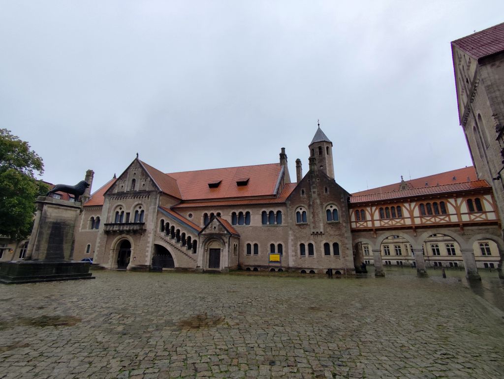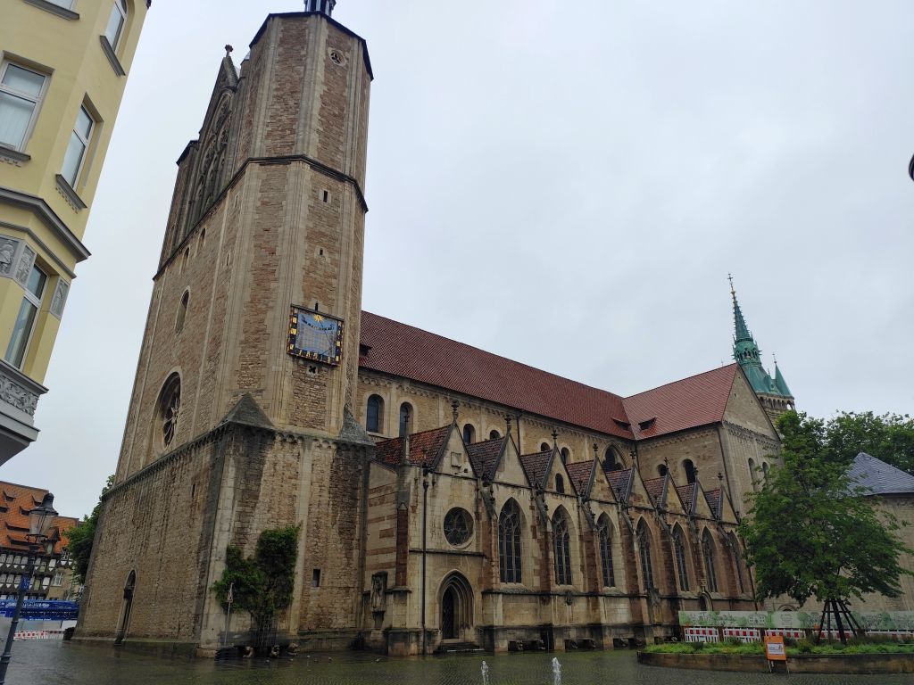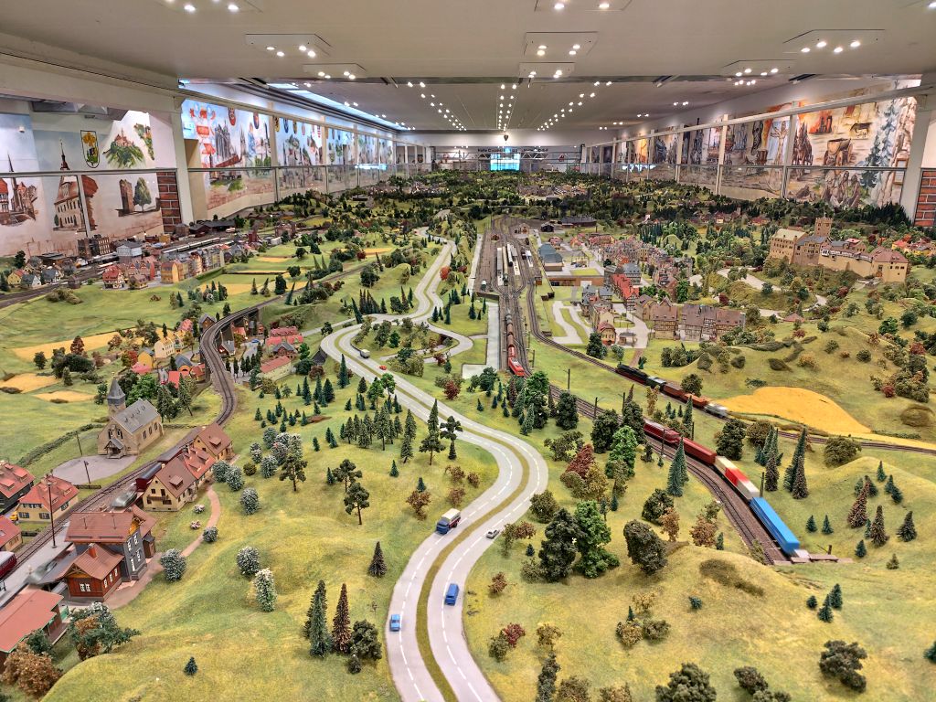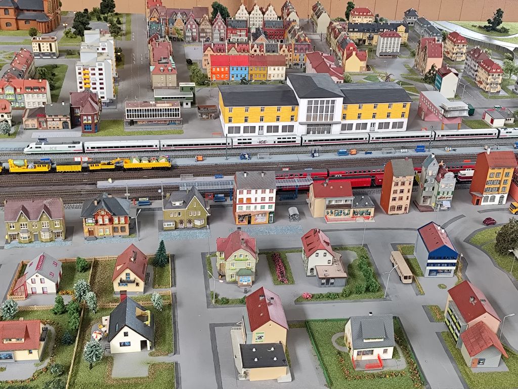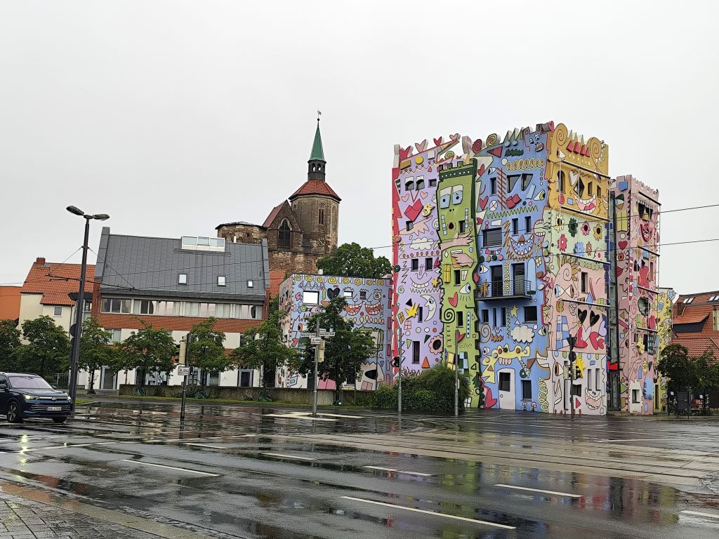 Frühmorgens fahre ich in Jena ab. Es regnet nicht, doch wie schon gestern ist der Himmel mit dunklen Gewitterwolken bedeckt. In Wiehe folge ich den Schildern „Modellbahn“ und gelange zur Modellbahn Wiehe. Doch die öffnet erst um zehn Uhr, so muss ich noch 45 Minuten totschlagen. Ich laufe zum Schloss und zurück. Kurz darauf wird geöffnet, ich bin der erste Gast. Die H0-Anlage „Thüringen von West nach Ost“ ist ausgezeichnet gemacht, sehr detailliert und liebevoll. Sie zeigt die Zeit vor der Wende, mit vielen Trabis, Barkas, Wartburg und IFA W50. Auch die Zonengrenze wurde nachgestellt. Auch das RAW Meiningen oder die Wartburg wurden nachgebaut. Die Spur-G-Anlage ist mehr für Kinder, wenig Detailliert und auch nicht sehr gross. Völlig unverständlich, weshalb eine Sektion die Osterinsel behandelt. Eine Spur TT Anlage heisst „Hamburg-Würzburg“, es ist aber auch Berlin dabei. Sie ist nicht mehr so liebevoll aufgebaut wie Thüringen. Noch weniger attraktiv ist die H0-Anlage „London-Istanbul“. Die verschiedenen Ortschaften wurden eigentlich ohne Bezug zur Wirklichkeit gebaut und die jeweils dominierende Kirche wurde als Modell aus grünem Schaumstoff gemacht, was stört. Diese Anlage ist mit derjenigen von Thüringen verbunden, so dass die Züge über einen zweispurigen Wendel in die Höhe fahren und auf der jeweils anderen Anlage wieder über einen Wendel nach unten. Die Spur G USA-Anlage ist wenig detailliert aufgebaut, einzig die Holzbrücken entsprechen minutiös dem Original. Im Berg drin gibt es verschiedene Tunnels mit Exponaten, die nichts mit der Anlage zu tun haben. Rund herum gibt es noch eine Indianer- und Eskimoausstellung mit vielen Zinnsoldaten. Das passt auch nicht dazu. Eine weitere Ausstellung ist ein Nachbau der Terrakotta-Armee aus Xian, etwas im Massstab 1:10. Ein paar Abgüsse der Terrakotta-Soldaten sind ebenfalls da. Ueber eine Treppe erreicht man eine Ausstellung des Malers Reinhard Bergmann. Ich kann mit seinen Bildern nichts anfangen, für mich sind sie Kitsch. Immerhin hat man von hier oben einen Ueberblick über die Anlagen in dieser Halle. Ebenfalls thematisch nicht zuordenbar ist die Ausstellung von Geldscheinen aus aller Welt. Interessant wiederum sind die vielen Vitrinen der Hersteller von Modellbahnen und Zubehör. Nach einer guten Stunde muss ich weiterfahren, schliesslich muss ich vor dem Gewitter Braunschweig erreichen. Um die Mittagszeit finde ich weit und breit nichts, das offen ist. Endlich, als ich durch Sangerhausen fahre, finde ich einen offenen Imbiss, wo ich halte und was essen kann. Es fängt heftig an zu regnen, ich ziehe das Regenzeug an. In Harzgerode tanke ich nach, muss aber im Regen weiterfahren. Die Strasse nach Quedlinburg ist leider ersatzlos gesperrt. So muss ich einen zehn Kilometer langen Umweg machen. Die Fahrt wäre wunderschön, wenn es nicht dermassen heftig regnen würde. Es geht durch den Harz, um den Brocken herum, Thale, Blankenburg, Wernigerode. Bisweilen hört es für kurze Zeit auf zu regnen, nur um danach mit grösserer Heftigkeit wieder anzufangen. Auch die Umleitung wird umgeleitet (d.h. die Umleitung muss man sich mit dem Navi selbst suchen). So fahre ich nur noch im Zickzack. Da verliere ich die Nerven und nehme die Autobahn für die letzten 60 Kilometer. Der Regen brätscht mir ins Gesicht und ich sehe fast gar nichts, weil die Autos so viel Wasser aufwirbeln. Kurz nach drei Uhr bin ich in der Ausfahrt Braunschweig. Ich stelle die Navigation auf „Tankstelle“ um und erreiche mit dem letzten Tropfen Benzin die Tankstelle. Von hier aus sind es noch fünf Kilometer zu meiner Unterkunft, dem Altstadt-Hotel Wienecke. Das Navi kann mir keine plausible Strecke für die Anfahrt errechnen, aber es ist Sonntag und es hat keinen Verkehr, weshalb ich nicht alle Einbahnstrassen beachten kann, um dahin zu gelangen. Endlich kann ich den Scooter abstellen, mein völlig durchnässtes Zeug in den vierten Stock (ohne Lift) tragen. Allerdings stellt mir das Hotel einen Raum zum Trocknen des nassen Zeugs zur Verfügung – ich hänge alles an eine Bockleiter, die dort steht. Trotz heftigem Regen will ich Braunschweig erkunden. Mit Schirm und Jacke gehe ich hinaus in das Unwetter, besuche das Magniviertel, wo sich schöne alte Fachwerkbauten um die St. Magnikirche scharen. Eine Ecke ist mit einem höchst originellen Pop-Art-Gebäude überbaut, dem „Happy Rizzi House“. Ich laufe zum Residenzschloss, das innen ein modernes Shoppingcenter, die „Schloss-Arkaden“, beherbergt. Nächster Stopp ist das Rathaus, im Stil der Jahrhundertwende erbaut, die Burg Dankwarderode, mit dem Burgplatz, auf dessen einen Seite der enorm wuchtige Dom St. Blasii steht. Weiter geht es zu „Vor der Burg“, zum Ringerbrunnen, zur „Kleine Burg“ Strasse mit den langen Fachwerkhäusern, zurück zum Dom St. Blasii. Da ich etwas ziellos weiterlaufe, gelange ich zum Stadtpark, der einen schönen Weiher hat. Ein Teil davon ist der Kiryat-Tivon-Park, der der Partnerstadt Kiryat Tivon in Israel gewidmet ist. Gerade als ich wieder beim Hotel ankomme, hört der Regen auf. Ich habe jetzt keine Lust mehr, die Tour zu wiederholen, weshalb ich zu meinem Zimmer gehe und meine Kleider und den Schirm zum Trocknen lege.
