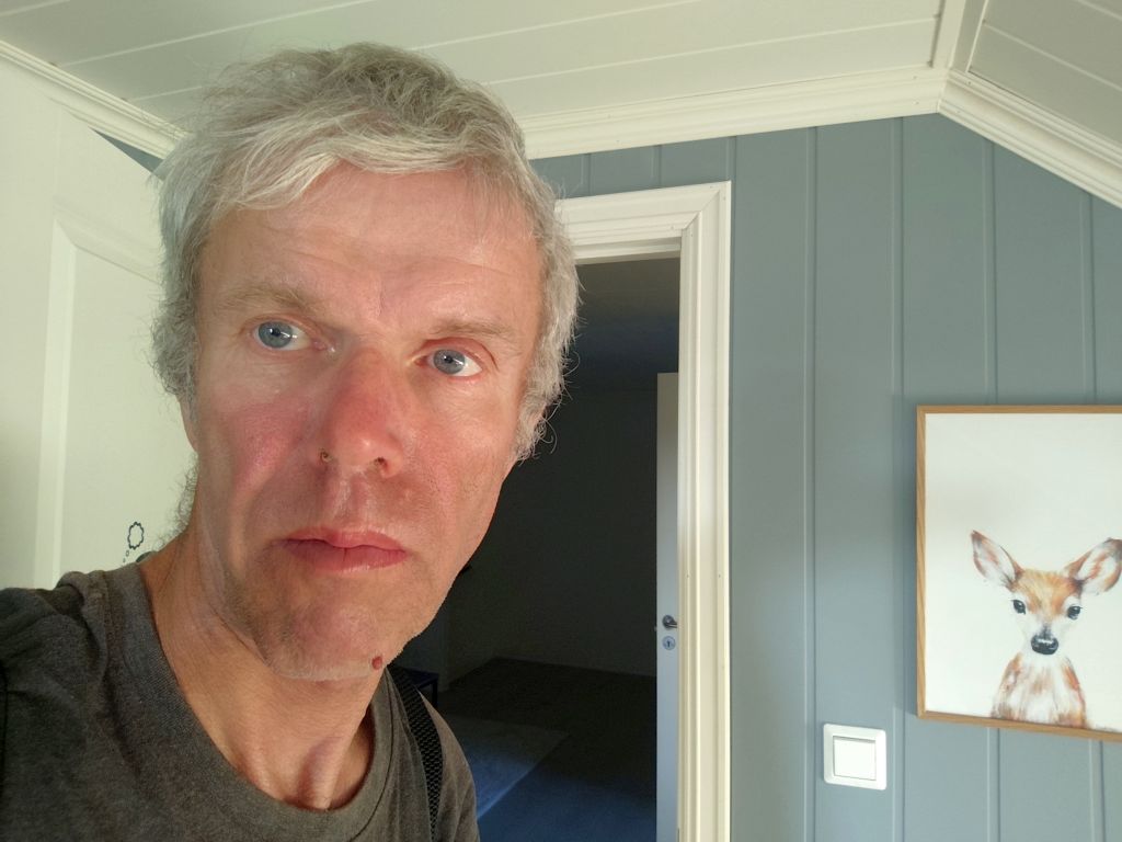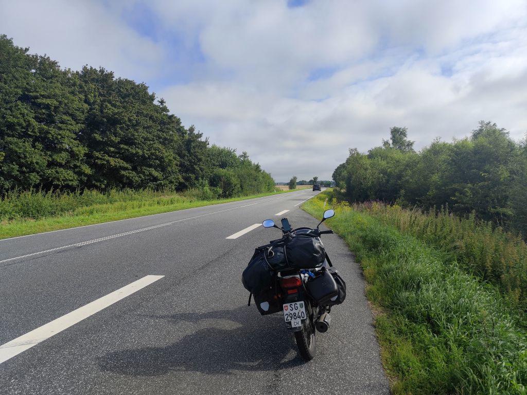 Meine ultra-teure Parkzeit läuft 08:07 ab, ich muss pressieren, den Scooter wieder herholen, beim Hostel beladen, losfahren. Der Himmel ist grau bedeckt, es ist ziemlich kalt. In Nørresundby kaufe ich mir ein Sandwich. Der Himmel wird immer weniger bedeckt, je weiter nördlich ich komme. Ich bin natürlich viel zu früh, aber was soll ich tun, in Dänemark haben sie offensichtlich den Motorrädern den Krieg erklärt, weshalb man sie nirgends kostenlos abstellen kann, denn sie werden wie Autos behandelt. In Hjørring kaufe ich nochmals etwas zum Essen, für die Fähre. Dann fahre ich zum Einchecken. Diese kommt mit Verspätung an und fährt auch mit Verspätung ab. Die Ankunft in Kristiansand wird jetzt mit 19:20 Uhr angekündigt. Dies bewahreitet sich auch, die Fähre kommt dann an und ich bin einer der ersten Motorradfahrer, die an Land fahren. Auf dem Weg kaufe ich mir noch etwas zum Nachtessen. Während der Fahrt landet eine Wespe oder Biene auf meinem Gesicht und sticht sofort zu. Der Stich ist unter dem rechten Auge und tut höllisch weh. Es zieht in den Kiefer und ins Auge hinein. Um acht Uhr komme ich in Øvrebø an und nehme meine Unterkunft in Besitz. Was ich nicht wusste, ist dass der Eigentümer diese Wohnung auch noch selbst benutzt und so tappe ich aus Versehen in sein Schlafzimmer.