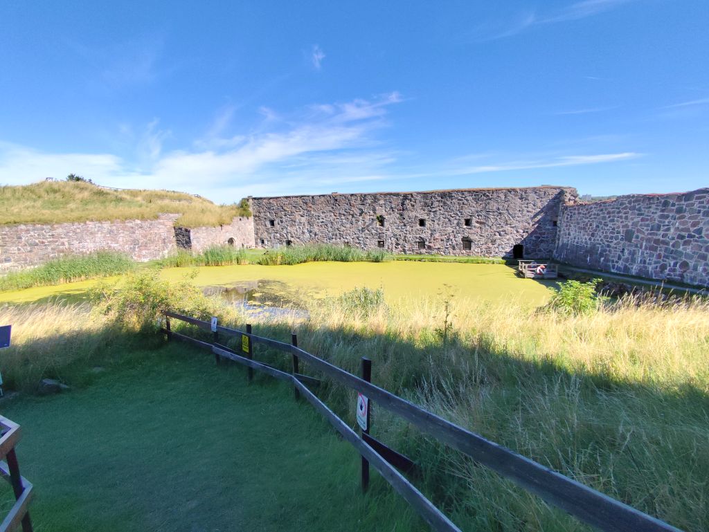 Mit Markus plaudere ich noch lange, bevor ich abfahre, denn ich habe es nicht pressant. Das Wetter ist perfekt, die Route wunderschön, Wälder und Seen entlang der Strasse. Ich fahre langsam, um das alles nicht zu verpassen. Eigentlich wäre ich gut im Zeitmanagement gewesen, doch in Kungälv sehe ich schon von weitem die Bohus Festung. Diese kann ich natürlich nicht auslassen. Ich besuche diese Festung, die vierzehn mal belagert wurde und eine wichtige Rolle in den schwedisch-dänischen bzw. schwedisch-norwegischen Kriegen spielte. Effektiv war die im 13. Jahrhundert gebaute Burg auf der norwegischen Seite und wurde jeweils von den Schweden angegriffen. 1789 wurde deren Zerstörung angeordnet, da sie jeglichen militärischen Wert verloren hatte, da die Grenze nun anders verlief. 1838 wurde die weitere Schleifung gestoppt. Heute gibt es noch den weitgehend intakten Turm „Vaters Hut“, sowie Teile der Gewölbe und der Befestigungen. Von hier ist es nur noch 30 Kilometer nach Göteborg. Das Wetter bleibt sonnig. In Göteborg checke ich im Backpackers Göteborg (früher Göteborg Vandrerhejm) ein, ein schönes, modernes Hostel mit allen Facilities. Den Töff darf ich zu den Velos stellen. Ich ziehe mich um und laufe in die Stadt: Pusterviksbron, Esperantoplatsen, Domkyrka, Østra Larmgatan, den wunderschönen Park Trädgardsføreningen, Bahnhofsplatz, daneben die Schleuse, das riesige Nordstan Shoppingzentrum, Fontanbron, Saluhallen, Feskekörka, Järntorget. Ueberall wird gebaut, besonders auch in den Fussgängerzonen. Vieles ist abgesperrt. Am Abend hole ich mir einen Beutel Avocados und mache noch etwas Haferflocken dazu, ein gutes Abendessen.
