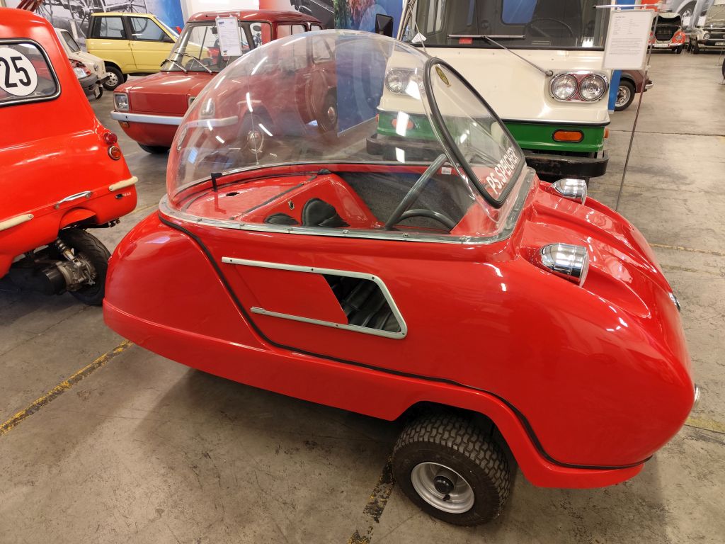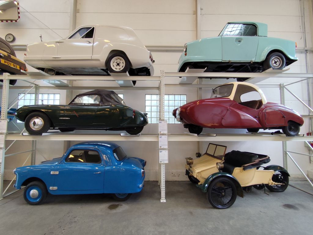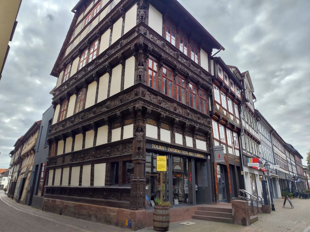 Das Wetter ist zwar grau und kalt, doch es regnet nicht. Ich entschliesse mich spontan, eine Stunde zu früh ins 11km entfernte Einbeck zu fahren, um die Stadt anzusehen. Das ist eine positive Ueberraschung. Das ganze Städtchen ist voller wunderschöner Fachwerkhäuser, oft reichlich verziert. Ich komme gar nicht mehr raus aus dem Fotografieren. Und weil das Wetter so bedeckt ist, brauche ich nicht auf die Schatten zu achten. Interessant ist das Rathaus mit den beiden Türmchen davor. Um zehn Uhr bin ich beim PS-Speicher. Mein Online-Billett ist eine Enttäuschung, zum einen viel teurer wie vor Ort und zum Zweiten ohne Optionen. Ich besuche die Hauptausstellung. Die Entwicklung des motorisierten Verkehrs ist sehr didaktisch und mit kurzen, prägnanten Texten auf fünf Etagen eines ehemaligen Getreidesilos dargestellt. Für die Zeit vor dem zweiten Weltkrieg werden vor Allem Motorräder gezeigt, danach auch mehr Autos. Nach der Hauptausstellung besuche ich noch die Autohalle, wo es auch viele interessante DDR-Fahrzeuge hat, so ein Barkas B1000 und ein Horch P240. Nun kaufe ich noch ein Billett für die Kleinwagen-Ausstellung dazu. Ich muss dafür in einen anderen Ortsteil fahren, wo in einer grossen Halle fast alle Kleinwagen stehen, die je gebaut wurden. Es hat Goggomobile, Lloyd, AWZ und Trabanten, Kleinschnittger, Champion, Bond, BAW Spatz, BMW Isetta, Messerschmitt, Fend, Krobot und vieles mehr. Eine Halle zeigt Elektrofahrzeuge, von den Anfängen bis zu den VW Golf-Versuchswagen. Im oberen Stock sind weitere Raritäten ausgestellt, Fiat in allen Variationen, japanische Key-Cars oder frühe Saab-Modelle. Vor dem Gebäude steht noch ein eigenartiges Gefährt, aus einem Rumpf eines Piper-Sportflugzeuges gebaut. Um halb sechs Uhr fahre ich zurück nach Greene, wo ich im Gasthaus ein gutes Abendessen einnehme und ausnahmsweise mal Bocksbier (das weltberühmte Einbecker Bier) geniesse.