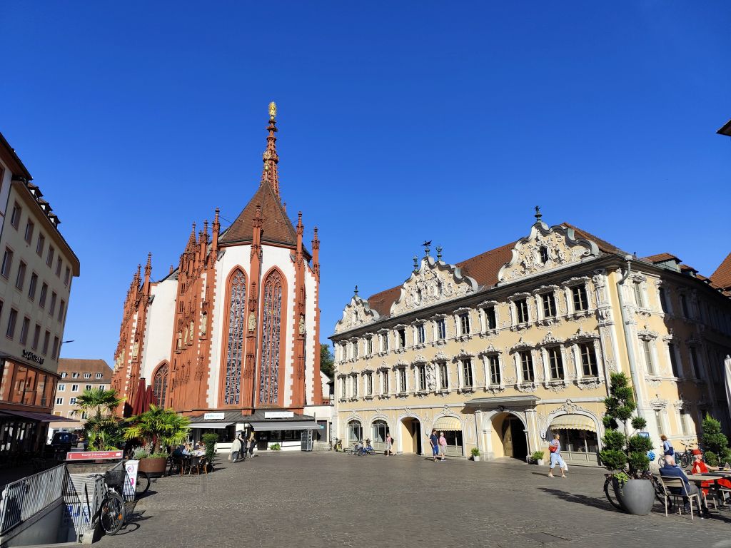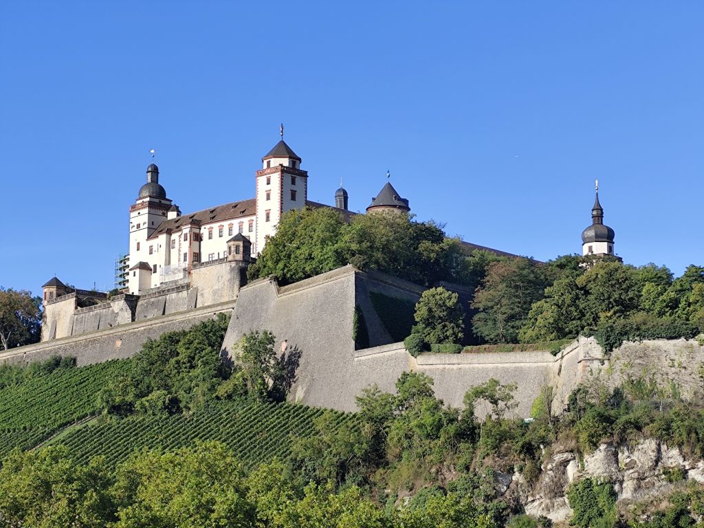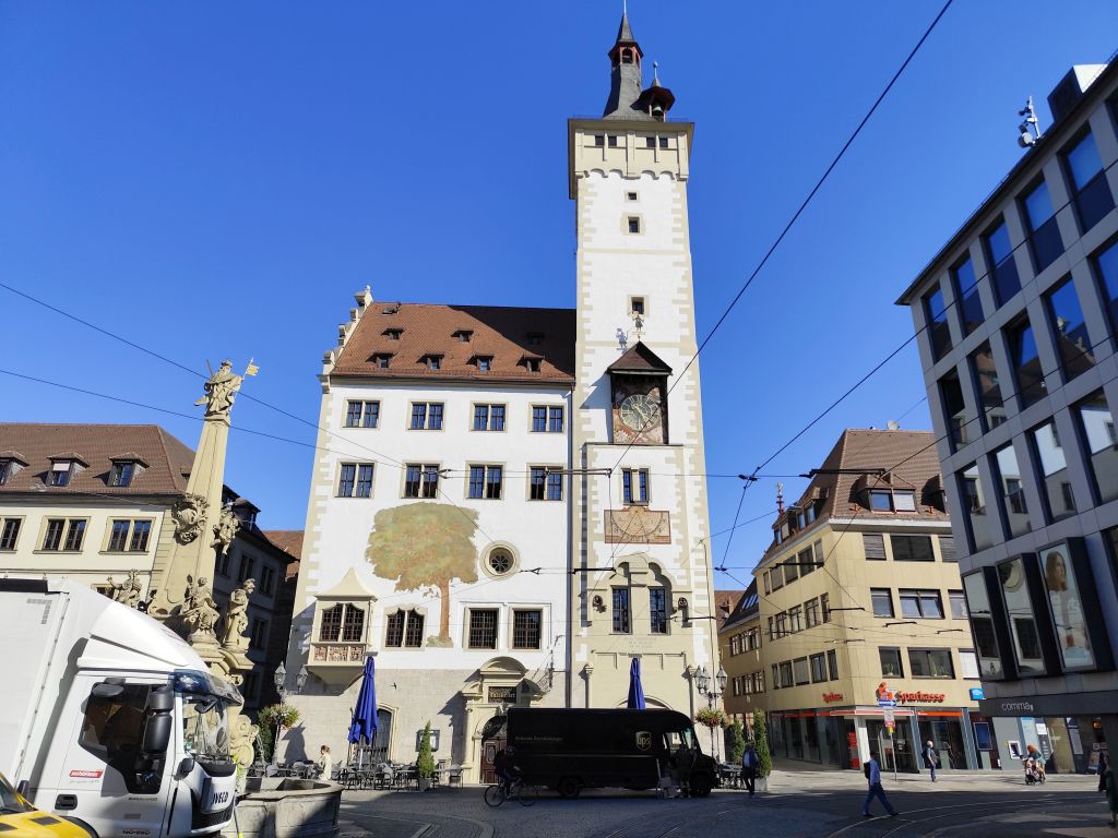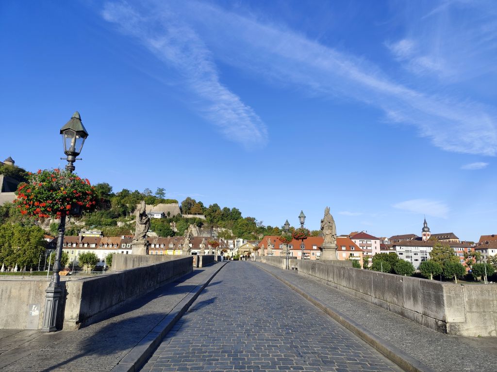 Wunderschönes und warmes Wetter grüsst. Ich schlage mir den Bauch am grossartigen Frühstücksbuffet der Jugendherberge voll. Ich laufe über die Alte Mainbrücke ins Stadtzentrum. Darunter fährt gerade ein extrem langes Ledischiff in die Schleuse ein. Dann gehe ich auf den empfohlenen Stadtrundgang durch Würzburg: Kiliansdom, Franziskanerkirche, St. Michael, Residenz (Hofgarten), Burgerspital, Stift Haug, Juliusspital, Marienplatz, Marienkapelle, Neumünsterkirche mit den zwei Krypten Kreuzkrypta und Kilianskrypta, Altes Rathaus. Beim nochmaligen Ueberqueren der Alten Mainbrücke fährt unten ein kleineres Ledischiff in die Schleuse ein. Ich erklimme die vielen Treppen zur Festung Marienberg, von wo ich zwar eine schöne Aussicht über die im Gegenlicht stehende Stadt habe, doch die Festung kann man nicht besuchen, sie ist wegen Renovationsarbeiten geschlossen. Lediglich der Platz mit dem Pferdebad ist offen. Ich laufe zurück zur Jugendherberge. Kurz nach elf bin ich wieder dort. Dann packe ich mein Töffli und fahre ab. Das Wetter ist toll, ich komme zügig vorwärts. Schon in Visselhövede muss ich nachtanken. Wegen dem grossen Frühstück verspüre ich keinen Hunger. Um die Mittagszeit bin ich in Crailsheim. Als ich auf ein Rotsignal zufahre, stellt der Motor ab. Egal, was ich versuche, er lässt sich nicht mehr starten. Ich teste die Zündung – die Zündkerze kann ich leider nicht mehr herausschrauben, sie hat sich während der Reise so festgeklemmt, dass man sie nicht mehr herausschrauben kann. Der Zylinderkopf ist damit kaputt, aber das ist nicht das Problem. Klar ist, dass der Motor kein Benzin kriegt. Ich zerlege das Motorrad komplett, was mit dem Bordwerkzeug äusserst schwierig ist, da alle Schrauben festsitzen. Ein Motorradfahrer will mir helfen, aber er kann ja nichts beitragen. So nehme ich auch das vordere Schutzblech ab, entferne den Luftfilter und kann jetzt Benzin in den Ansaug leeren. Daraufhin startet der Töff wieder und ich muss ihn wieder zusammenbauen. Eineinhalb Stunden nach dem Aussetzer bin ich fertig, doch meine Hände sind ganz schwarz. Bei der nächsten Tankstelle gehe ich erst Hände waschen, dann tanke ich auf. Ab jetzt läuft wieder alles, wie wenn nichts gewesen wäre. Doch ich muss pressieren, um vor sechs Uhr in Ulm anzukommen. Das ist einfacher gesagt als getan. Google Maps kennt die Strassensperrungen offenbar nicht und sämtliche Strassen Richtung Ulm sind gesperrt. Ich gerate immer weiter östlich und muss einen riesigen Umweg fahren, um die Strassensperrungen zu umgehen. Kurz vor sechs Uhr komme ich in Ulm an und checke in der weit aussen gelegenen Jugendherberge ein. Das Abendessen – Gulasch und Knödel- ist eigentlich ungeeignet, doch ich bin hungrig und nehme es trotzdem, halt mit einem Glyclazid. Dafür reicht es dann auch noch für einen Dessert. Für einen Besuch des Stadtzentrums reicht es heute nicht mehr.
